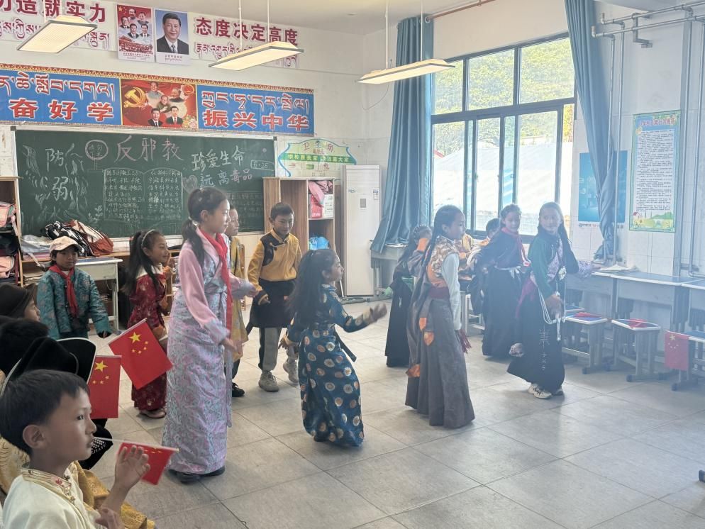 “五星红旗迎风飘扬,胜利歌声多么响亮……”活动最后,多地青少年共同唱响《歌唱祖国》。熟悉的旋律在湖北通山、新疆库尔勒、西藏波密同时响起,虽隔万里,心却相连。激昂的歌声让爱国、奉献、团结的种子在同学们心中生根发芽。
