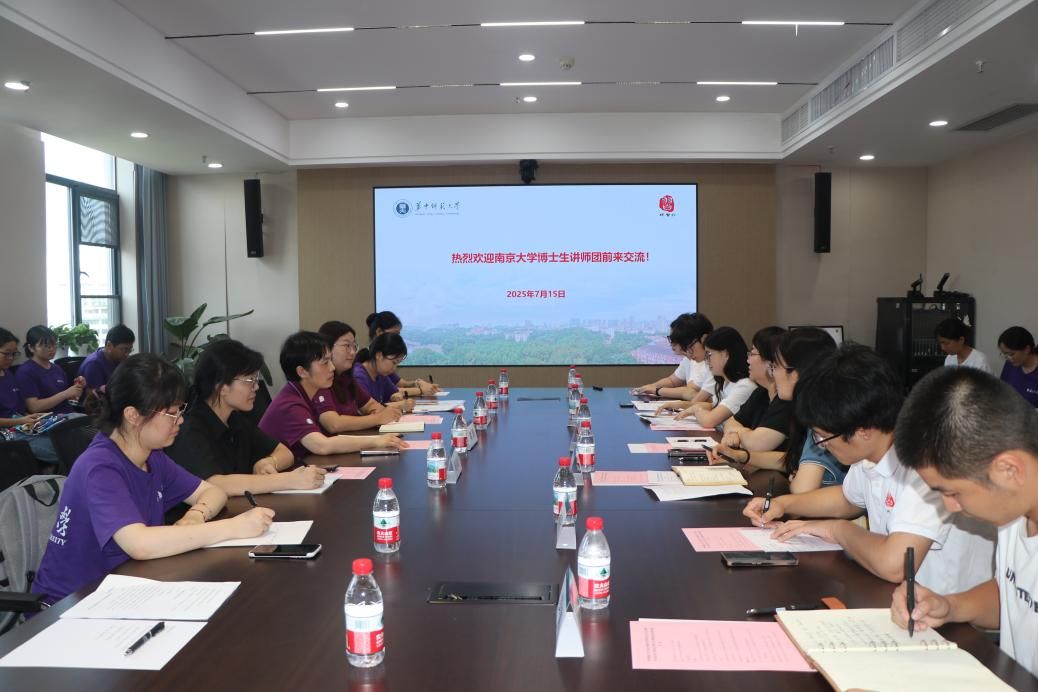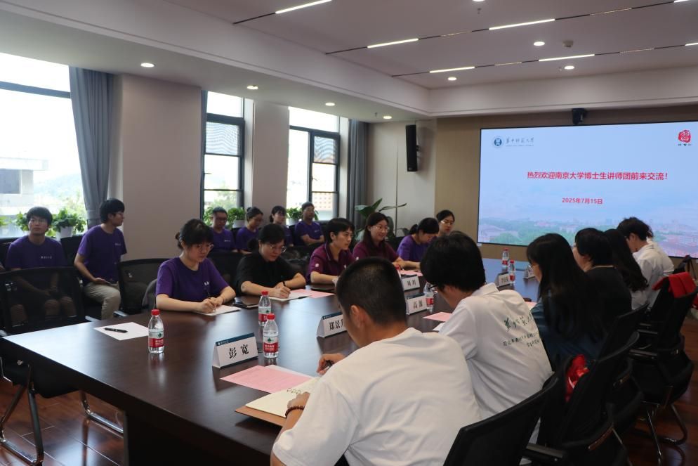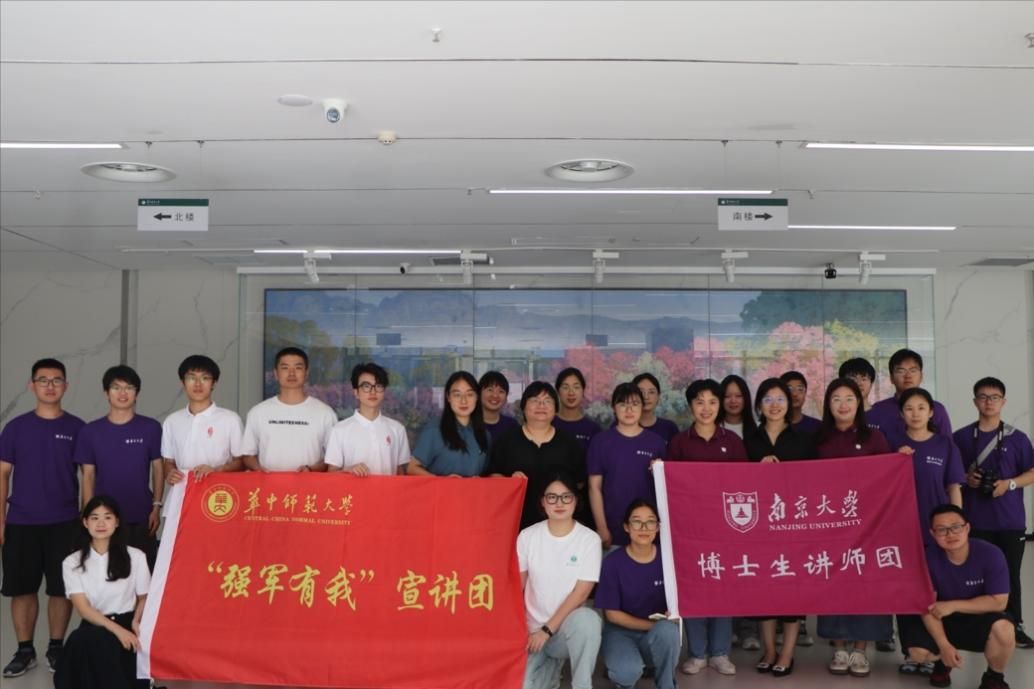 马克思主义学院讯(通讯员 郑景升 赵子玉)为进一步深化高校间理论宣讲的交流与合作,推动思政教育工作迈向新高度。7月15日,南京大学党委学生工作部思政教育办公室主任、博士生讲师团指导老师周玥率领博士生讲师团成员代表及物理学院“强国宣讲团”成员代表一行来到我校,与华中师范大学习近平新时代中国特色社会主义思想学生研习社(以下简称“研习社”)举行座谈交流会。华中师范大学马克思主义学院党委副书记邵莉莉出席座谈会,研习社成员代表以及华中师范大学“强军有我”宣讲团成员代表参会。华中师范大学马克思主义学院辅导员高源主持会议。