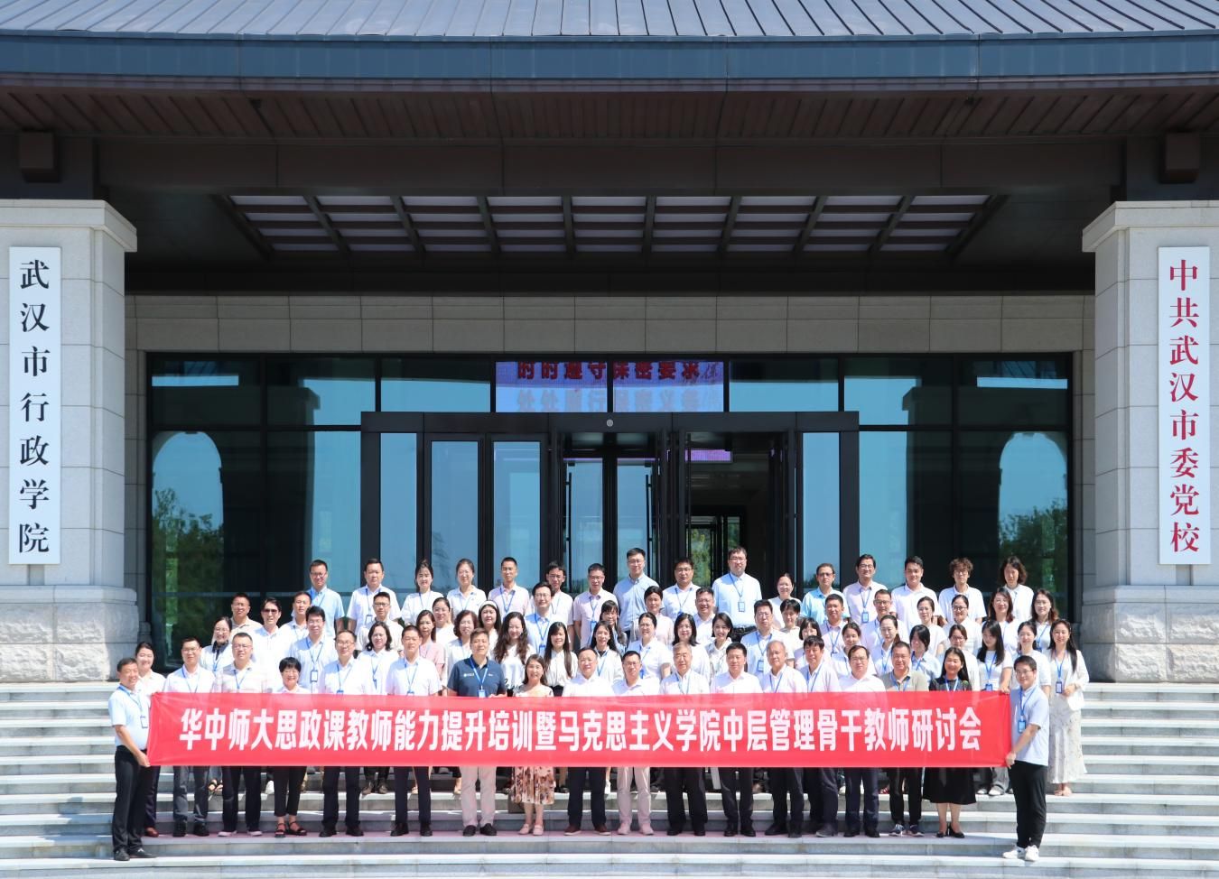 马克思主义学院讯(通讯员 蒋林杉;摄影 蒋林杉 陈奕凝)为深入贯彻习近平总书记关于思政课建设的重要指示精神,全面落实党中央和教育部党组加强思政课建设的工作要求,切实提升思政课教师教学能力与育人水平,8月28日,华中师范大学马克思主义学院在武汉市委党校举行思政课教师能力提升培训会。校党委书记夏立新出席会议并发表讲话,学院全体教师、校内参与思政课教学的多学科兼职教师等八十余人参加会议。会议由马克思主义学院院长毛华兵主持。