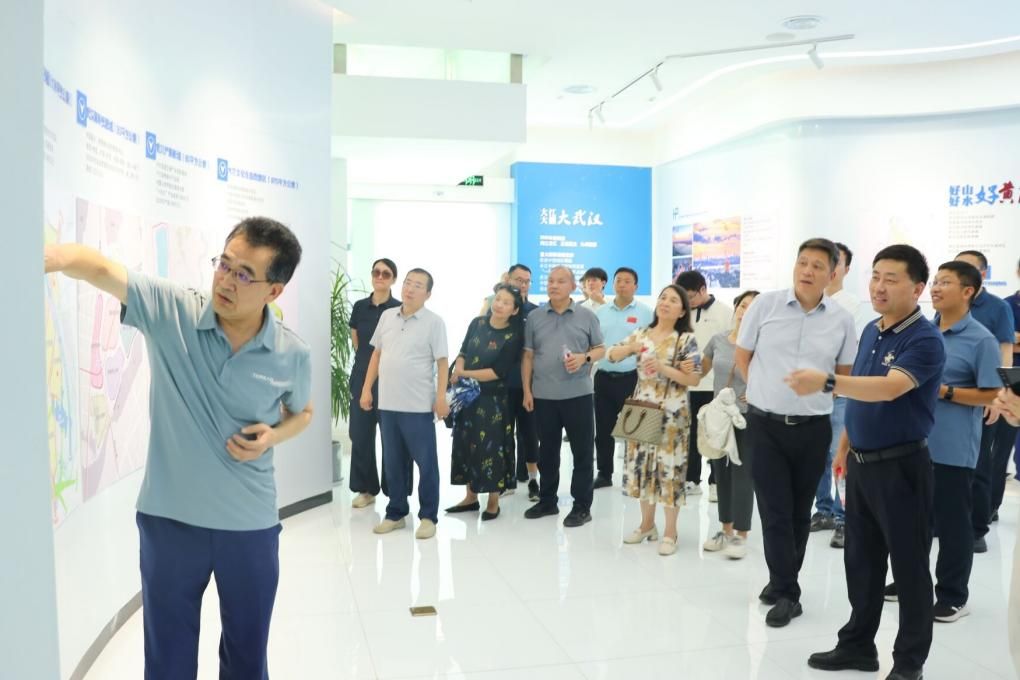 会前,学院中层管理骨干教师于8月26日赴华中师范大学盘龙城校区建设指挥部调研考察,建设指挥部综合管理部副部长孙焱陪同调研并进行现场讲解。在空港国际商务新城规划展示馆,孙焱系统介绍了新校区规划理念、功能布局及建设进展,通过图文展示和沙盘模型,调研组进一步了解新校区规划设计思路与发展蓝图,随后前往附近酒店顶层俯瞰新校区全貌,实地考察建设情况,为学院未来发展提供重要参考。