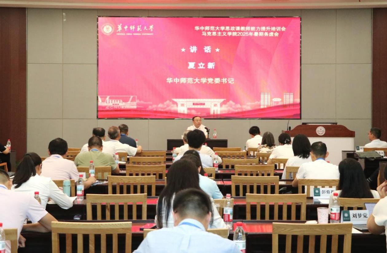 8月28日,华中师范大学思政课教师能力提升培训会举行,校党委书记夏立新出席会议并发表讲话,学院全体教师、校内参与思政课教学的多学科兼职教师等八十余人与会。本次会议由马克思主义学院院长毛华兵主持。