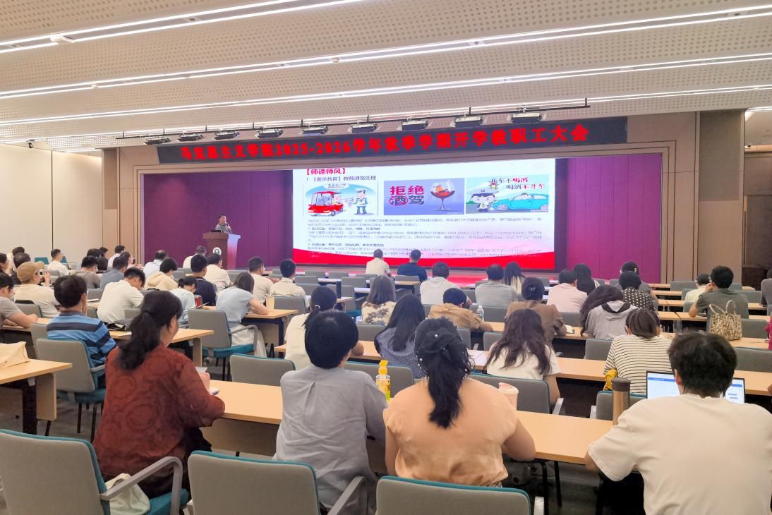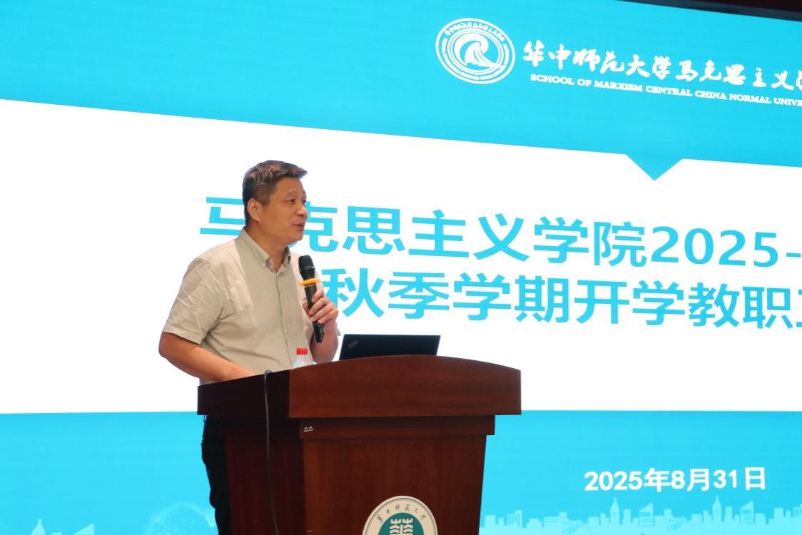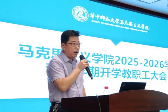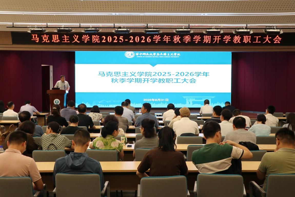 马克思主义学院讯(通讯员 蒋林杉;摄影 蒋林杉)为明确秋季学期工作重点、凝聚全院教职工共识,8月31日,马克思主义学院2025-2026学年秋季学期开学教职工大会在文科楼一楼101报告厅召开。学院全体教职工参会,会议由马克思主义学院院长毛华兵主持。