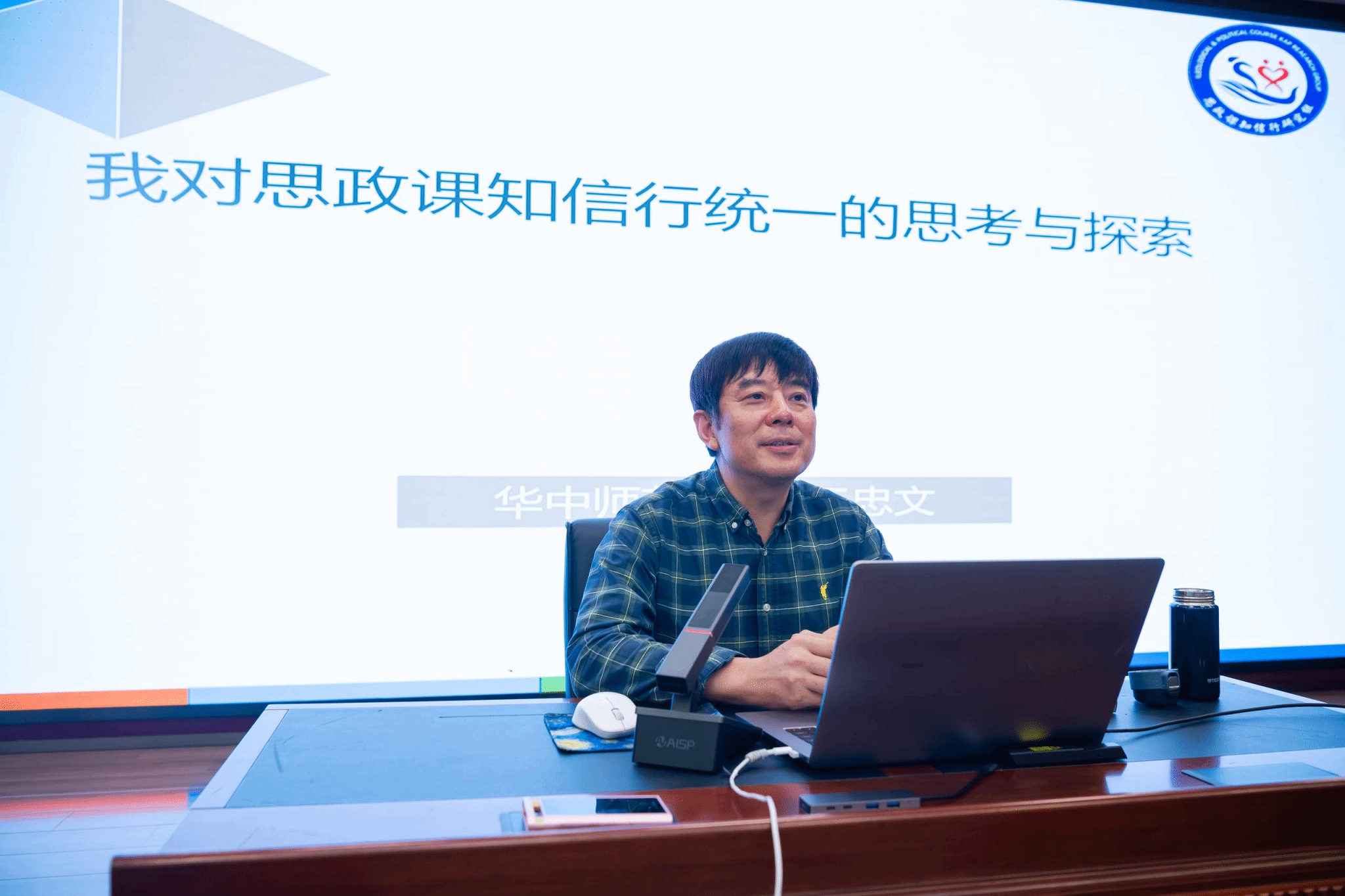 华中师范大学教授、国家“万人计划”教学名师王忠文教授结合自身丰富的教学实践经验,作了《我对思政课知信行合一的思考与探索》的主题报告。他从中学思政课教师的前期探索、新时代面临的新问题、个人的思考与行动,以及实践效果与反思四个维度,全面阐述了何为优秀的思政课教师。他鼓励同学们不仅要站稳讲台、更要勇于脱颖而出,逐步成长为教育家式的教师。