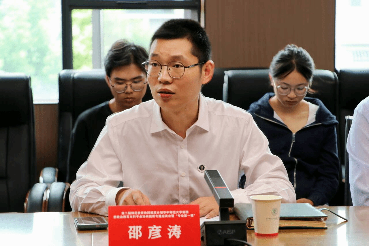 思想政治教育本科专业协同提质暨弘扬践行教育家精神专题座谈会在新文科楼北楼409会议室热烈展开,会议由华中师范大学马克思主义学院副院长邵彦涛主持。
