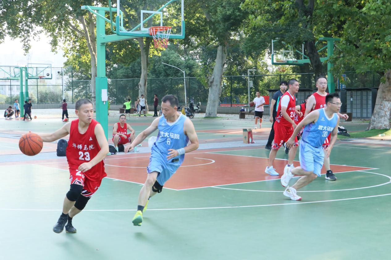 比赛伊始,便迅速进入白热化。你一记精准跳投空心入网,我一回快速反击上篮得分,双方比分交替上升,场边欢呼声、呐喊声此起彼伏。每一次运球都藏着战术巧思,每一次传球都凝聚团队信任,每一次抢断都迸发速度与力量,每一次盖帽都彰显防守决心。华中师范大学马克思主义学院稳扎稳打,展现出团队的默契配合;武汉大学马克思主义学院攻势凌厉,屡屡打出精妙快攻。两支队伍用特色鲜明的球风与战术,赛出了教职工的拼搏风采,更赛出了校际间的深厚情谊。