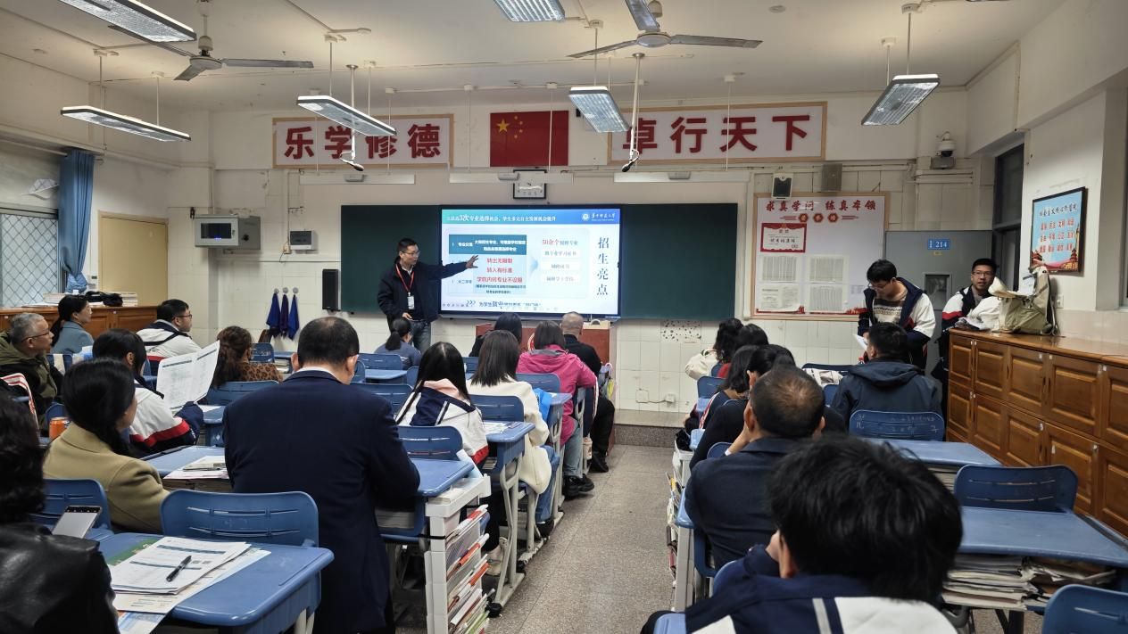 宣讲会上,邵彦涛详细介绍了我校的发展历程、学习资源、校园生活、学科优势、师资力量、教育成就,使两校同学对我校有了全面认识。针对高三学子普遍关注的专业选择、就业前景等核心问题,邵彦涛结合我校招生政策与就业数据进行细致解答,为同学们科学选择专业、合理规划未来提供了切实帮助。