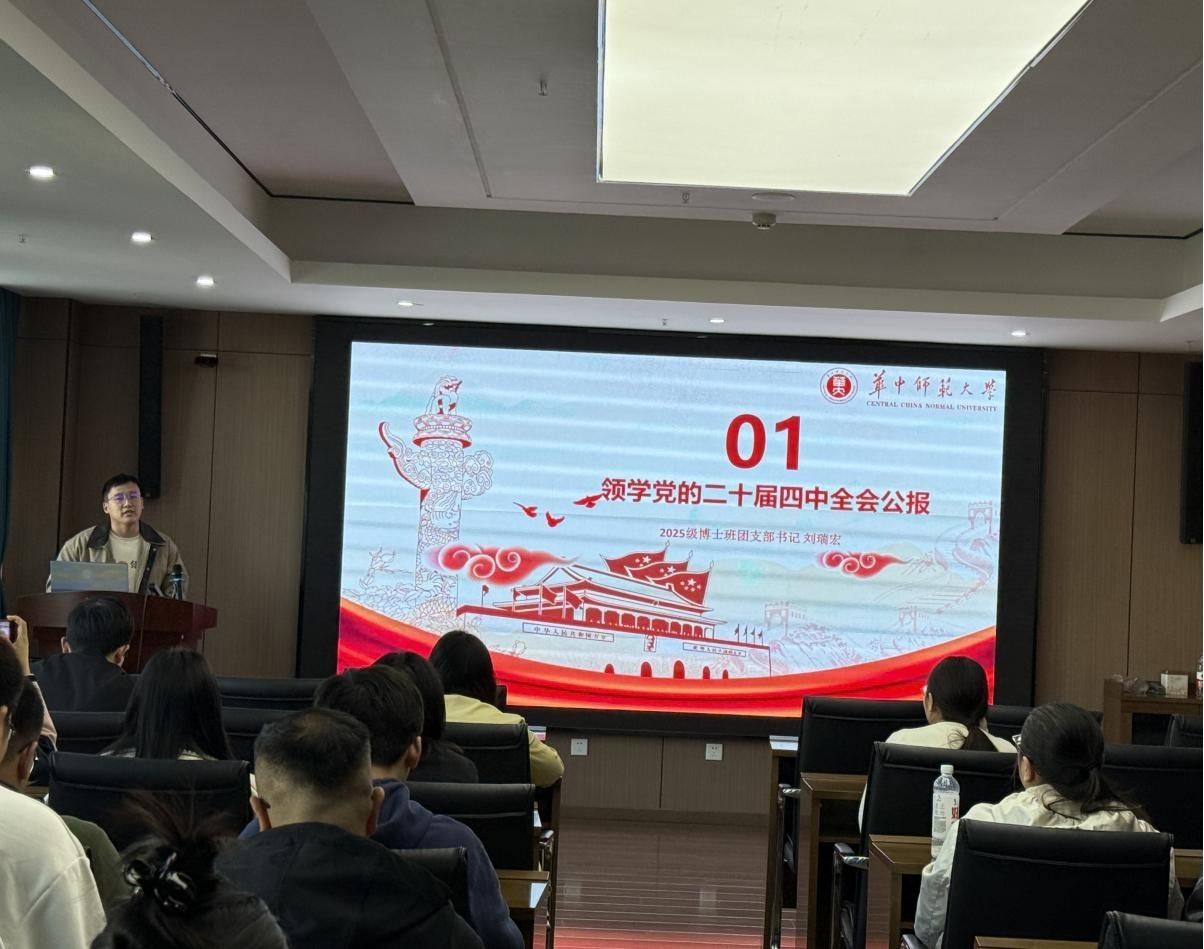 马克思主义学院讯(通讯员 刘瑞宏;摄影 张婷翔 )10月23日,中国共产党第二十届中央委员会第四次全体会议公报发布。为深入学习贯彻党的二十届四中全会精神,华中师范大学马克思主义学院2025级博士班团支部于11月5日上午在文科科研北楼407会议室举办“不忘初心,‘十五五’继续前进”主题团日活动。2025级博士班全体团员参加本次活动。
