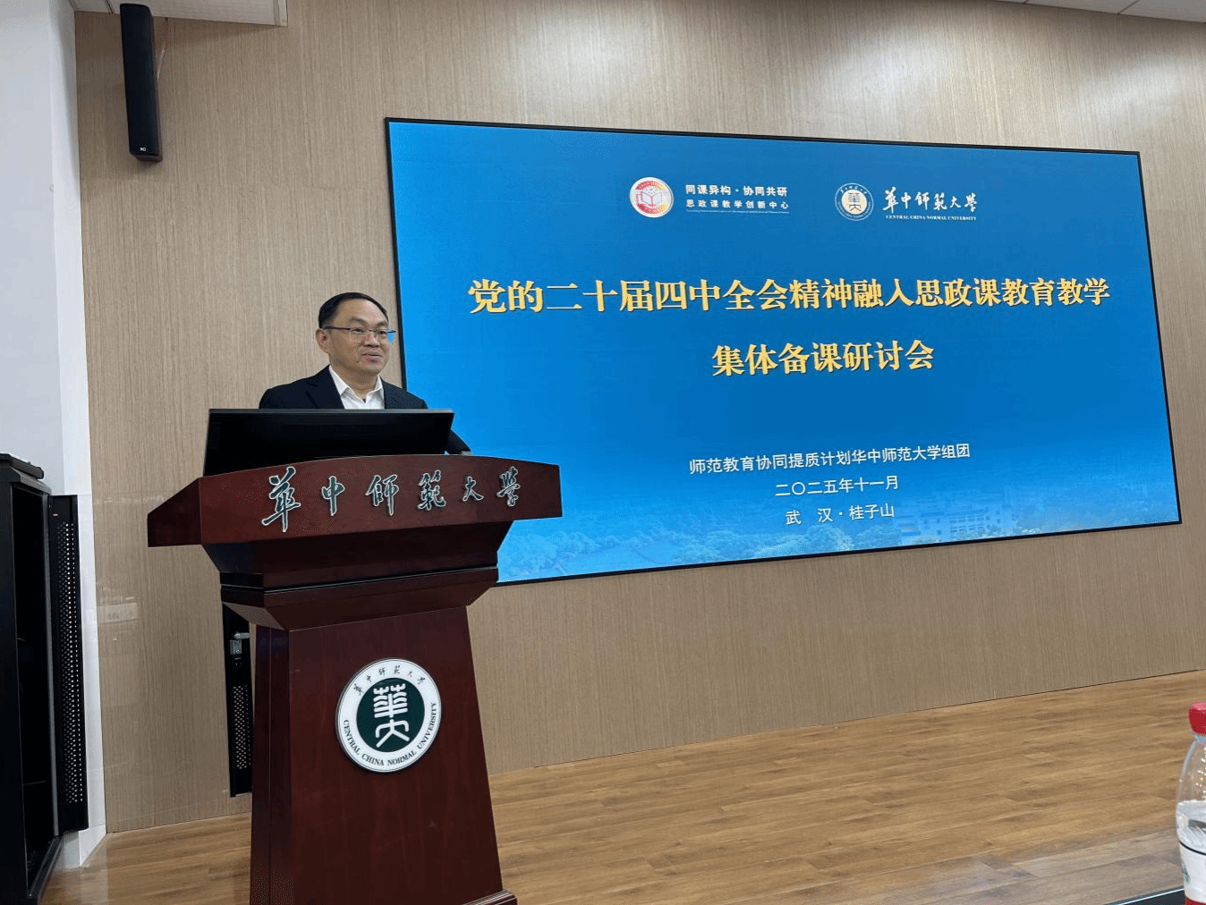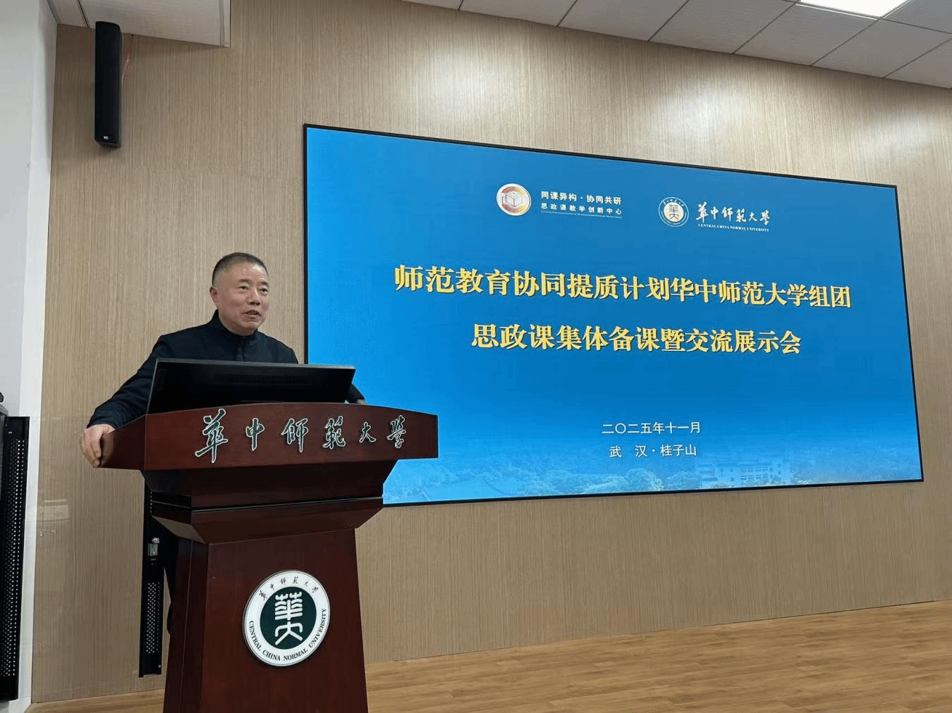 马克思主义学院讯(通讯员 熊绵)为深入贯彻落实习近平新时代中国特色社会主义思想和党的二十大及二十届历次全会精神,落实教育部关于推进师范教育协同提质计划的有关要求,推进思政课建设内涵式发展,加强思政课教师互学互鉴,2025年11月15日,师范教育协同提质计划华中师范大学组团思政课教学研修营于华中师范大学顺利举行。遵义师范学院马克思主义学院党委书记王劲松、黔南民族师范学院马克思主义学院院长缪成长、汉江师范学院马克思主义学院副院长王君、华中师范大学国内合作与培训管理处副处长黄志华、华中师范大学马克思主义学院党委书记孙永祥等领导出席。湖北师范大学、遵义师范学院、黔南民族师范学院、汉江师范学院、华中师范大学马克思主义学院的思政课教师和学生代表共同参加。活动由华中师范大学马克思主义学院副院长李芳主持。