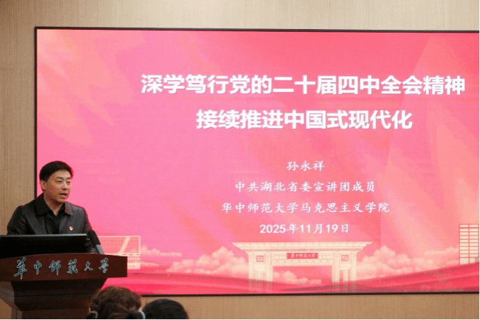 第一阶段联组学习由学习贯彻党的二十届四中全会精神湖北省委宣讲团成员、马克思主义学院党委书记孙永祥作专题宣讲。