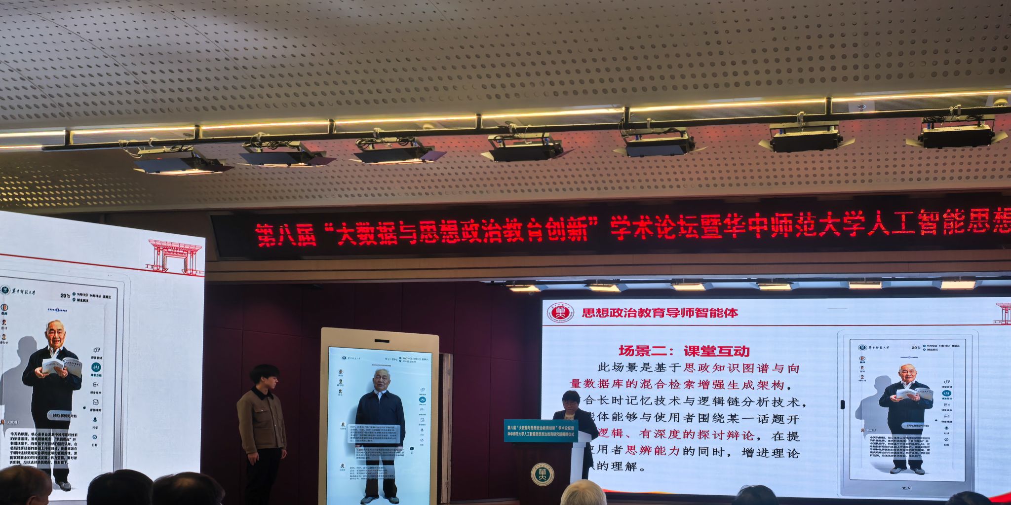 华中师范大学马克思主义学院党委副书记邵莉莉教授在成果发布上介绍,已经构建起思想政治教育导师智能体、思想政治理论课教师智能体、AI辅导员智能体、青年学生智能体“四位一体”的思想政治教育智能体矩阵,实现思政学科发展、思政课教学、日常思想政治教育与思想政治教育实践的全时段、全场景、全流程覆盖。在成果展示阶段,演示了聚焦思想政治教育学科知识学习与研究为主体内容的张耀灿先生“思想政治教育智能体”、服务日常思政工作的“AI辅导员智能体”、服务学生的“青年学生智能体”,三个不同“数字人”实现各领域互动,满足多场景思政应用需求。