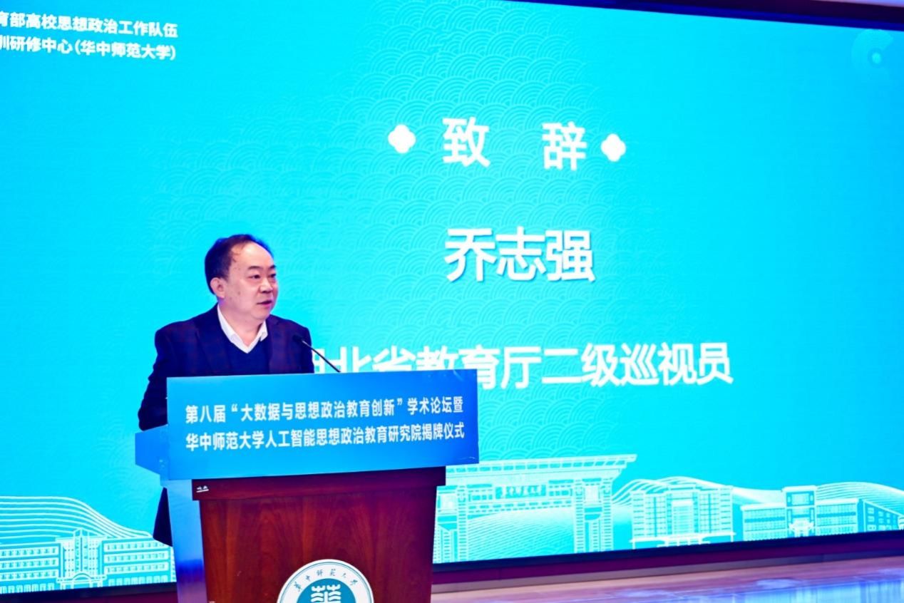 湖北省教育厅二级巡视员乔志强在致辞中指出,全省正深入学习贯彻习近平关于教育和思政课建设的重要论述精神,锚定立德树人根本任务,持续深化思政教育改革创新,全力推进大中小学思政课一体化建设,着力构建全域协同的育人格局。他特别强调,华中师范大学作为全国重点马克思主义学院建设高校、湖北省大中小学思政课一体化共同体牵头单位,充分发挥学科、师资与平台优势,在探索具有湖北特色的思政育人新范式中发挥了引领作用、作出了重要贡献。此外,他围绕“登高望远”把握时代方向、“脚踏实地”深化实践创新、“居安思危”筑牢安全底线三个维度,深入阐述了人工智能赋能思政教育创新的实践路径与发展思考,为新时代思政教育提质增效提供了有益指引。