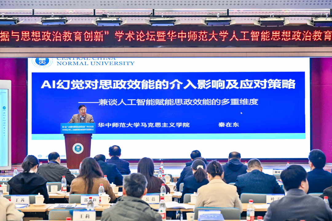 华中师范大学马克思主义学院教授秦在东作题为《AI幻觉对思政效能的介入影响及应对策略》的主旨报告。他指出AI技术虽强大但能量有限,我们应运用而不迷信;依托而非依赖,从而避免人脑退化;应取其长而避其短,发挥其强大的数据处理能力的同时,也要意识到对人类思维的健康发展埋下了陷阱。