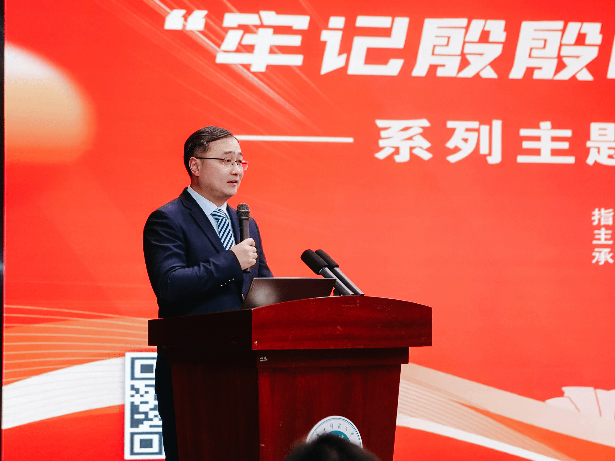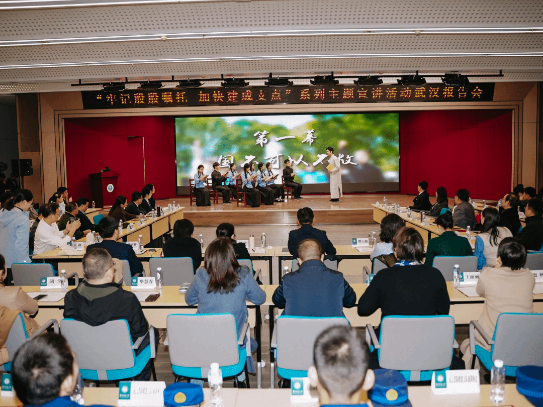 现场氛围热烈。理论宣讲不仅要有“思想深度”,更要有“情感温度”。华中师范大学马克思主义学院原创沉浸式话剧《你好,恽代英》精彩展演,带领现场观众穿越百年时空,重温革命先烈以生命践行理想、用热血书写忠诚的壮烈篇章,让参会人员沉浸式感悟红色初心,厚植爱国情怀。