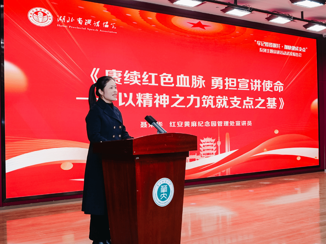 红安黄麻纪念园宣讲员聂荣华以《赓续红色血脉 勇担宣讲使命 以精神之力筑就支点之基》为题,动情讲述大别山革命历史与英烈事迹,号召新时代宣讲员做红色基因的“传火者”,让大别山精神在支点建设中焕发新的时代光芒。她本人累计为60余万游客讲解超3万小时,曾获湖北省党史知识竞赛一等奖。