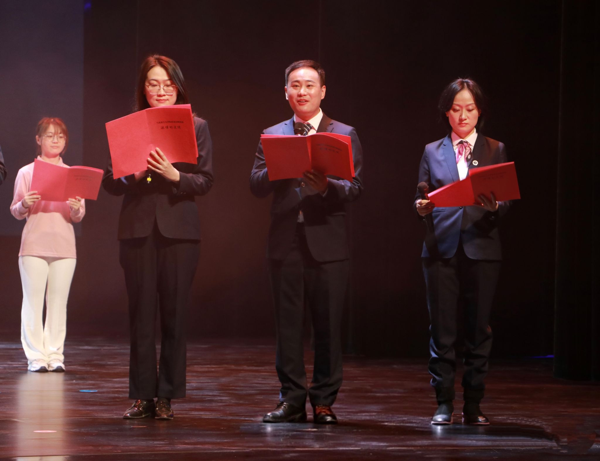文艺表演环节精彩纷呈,各单位节目各展所长、创意迭出。马克思主义学院师生共同演绎了原创诗歌朗诵《深情的追随》,以一堂行走在诗行里的思政大课,让现场观众沉浸式感受马院人代代相传的红色基因与矢志不渝的赤诚信仰。