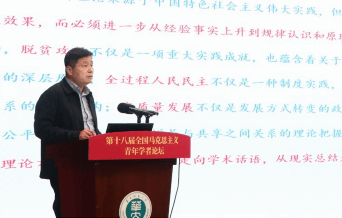华中师范大学党委常委、副校长刘宏达首先在致辞中向与会嘉宾表示了热烈欢迎。他回顾了学校在马克思主义理论学科建设与拔尖人才培养方面的深厚积淀,并强调了华中师范大学在助力构建中国自主知识体系、赋能青年理论人才成长的时代责任与使命担当。论坛开幕式由华中师范大学党委常委、马克思主义学院党委书记龚炜主持。