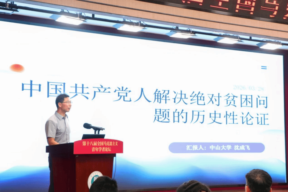 中山大学教授沈成飞以“共产党人解决绝对贫困问题的历史性论证”为题,从“马克思主义为解决绝对贫困问题提供方案”“中国共产党历史性地解决了绝对贫困问题”“中国减贫成就的历史性价值”等维度进行了阐释。