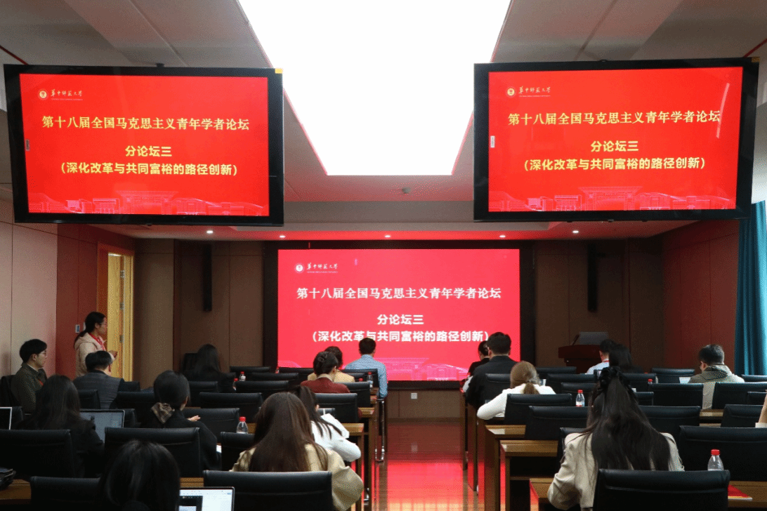 马克思主义学院讯(通讯员 张艳斌;摄影 华中师范大学马克思主义学院融媒体中心 朱林琪)2026年是习近平总书记在哲学社会科学工作座谈会上发表重要讲话10周年。为深入学习贯彻党的二十大和历届全会精神,深学习习近平总书记重要讲话精神,深入推进新时代党的创新理论体系化研究和学理化阐释,2026年3月27日至29日,第十八届全国马克思主义青年学者论坛在华中师范大学隆重举行。本次论坛由中国社会科学院马克思主义研究院与华中师范大学联合主办,华中师范大学马克思主义学院、社会科学文献出版社期刊分社及《马克思主义研究》编辑部共同承办。来自中共中央党校(国家行政学院)、中国社会科学院、北京大学、清华大学、中国人民大学、北京师范大学、南开大学、复旦大学、浙江大学等全国60余所高校与科研院所的近百位专家学者和青年才俊齐聚桂子山,围绕“党的创新理论体系化学理化研究阐释”这一主题进行了深入研讨。
