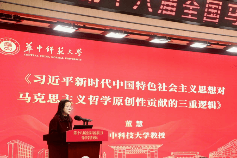 华中科技大学教授董慧以“习近平新时代中国特色社会主义思想对马克思主义哲学原创性贡献的三重逻辑”为题,从“历史进程与思想继承”“时代变化与实践发展”“理论创新与文明创造”三重逻辑对习近平新时代中国特色社会主义思想对马克思主义哲学的原创性贡献进行了阐释。