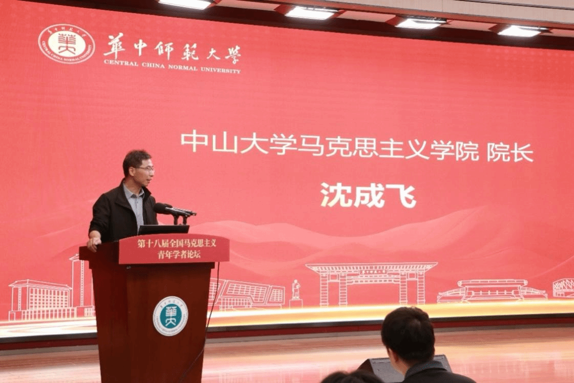 中山大学马克思主义学院院长沈成飞作为下一届论坛承办单位代表作接旗发言。他对本届论坛的学术水准与影响力给予高度评价,认为这是一次汇聚全国马克思主义理论学科青年才俊的高水平学术盛会,并表示将全力承办好下一届全国马克思主义青年学者论坛。