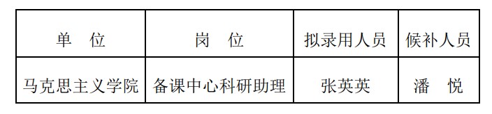 根据《华中师范大学合同聘用制人员管理办法》和《华中师范大学马克思主义学院备课中心2024年科研助理招聘公告》(2024年5月22日发布)相关要求,经个人报名、初审、笔试和面试等环节,现将拟录用人员和候补人员公示如下: