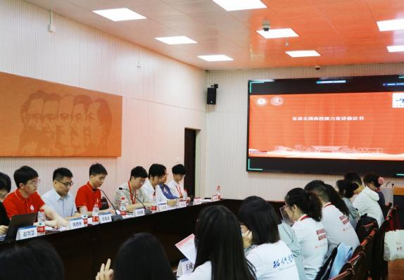 与全国各高校宣讲同仁开展联学联建,是研习社推动自身建设和发展的重要举措。研习社先后与清华大学、中国人民大学、中央财经大学、武汉大学、华中科技大学、大连理工大学、西安交通大学、四川大学、中南财经政法大学等多所高校开展联学共建,互相交流宣讲经验,形成宣讲共识,在互学互研中奏响理论宣讲大合唱。同时,研习社积极为全国高校宣讲同仁搭建宣讲交流平台,组织承办湖北省马克思主义理论类专业本科生论坛,论坛至今已成功开展五届,来自全国高校理论宣讲类社团代表在第四分论坛中积极开展示范宣讲、心得分享等,携手共进抒发青年新声。