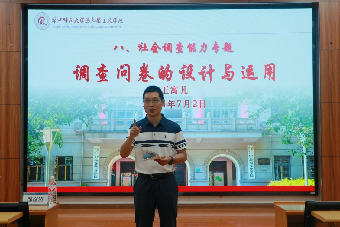 马克思主义学院讯(通讯员 陈文欣;摄影 席雨欣) 2024年7月2日晚,有道理又会讲道理——马克思主义学院2024年第三学期卓越能力训练周之“社会调查能力培训专题”在1号教学楼1101报告厅顺利举行。本次专题由我院教师王寓凡主讲,我院教学副院长邵彦涛主持。