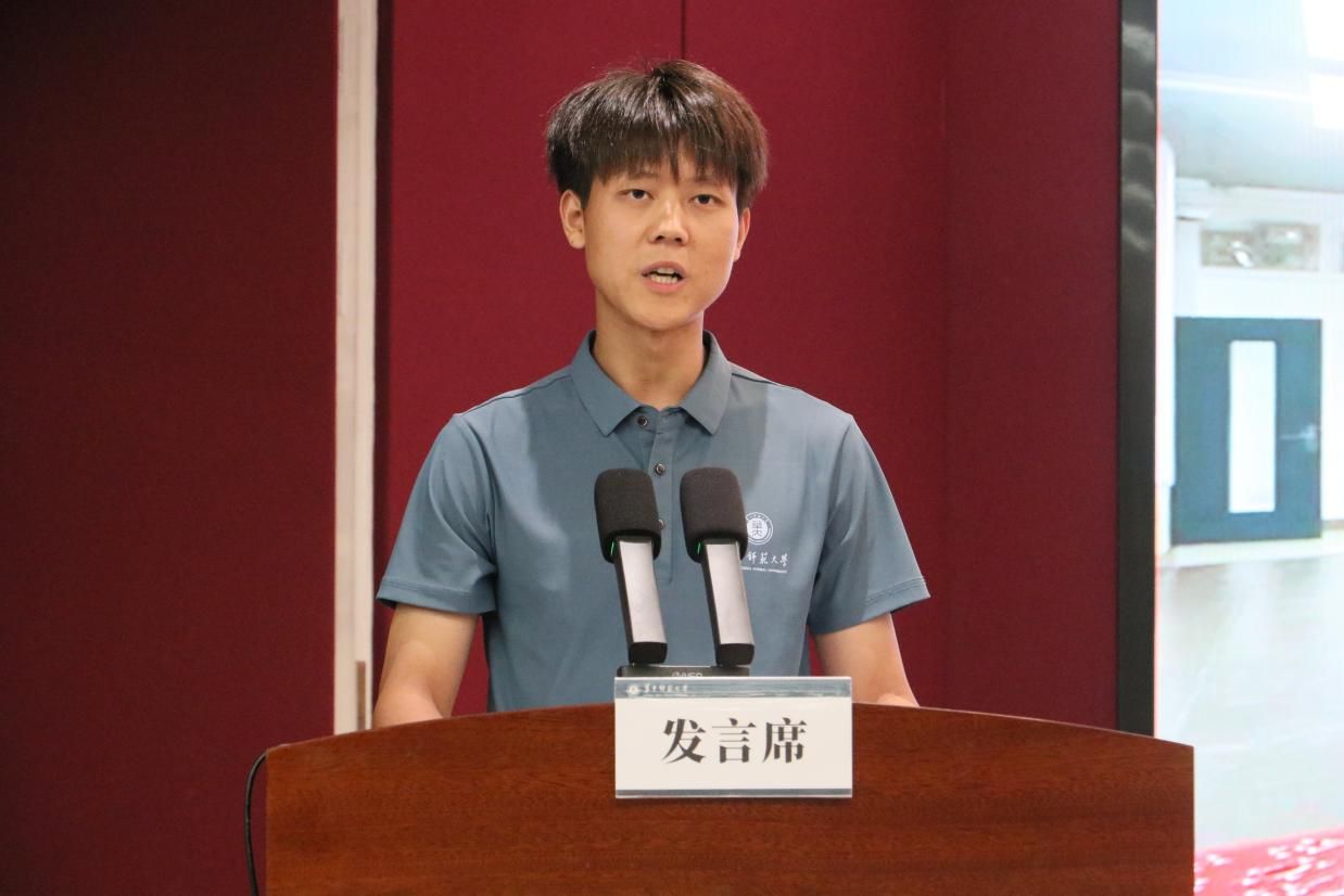 学院2025级本科生辅导员李泓桥老师发言。他立足工作本位,表示将全力做好同学们思想引领的“提灯人”、学习发展的“护航者”、日常生活的“好朋友”,与大家一同努力,把未来四年过得既有意义又有意思。