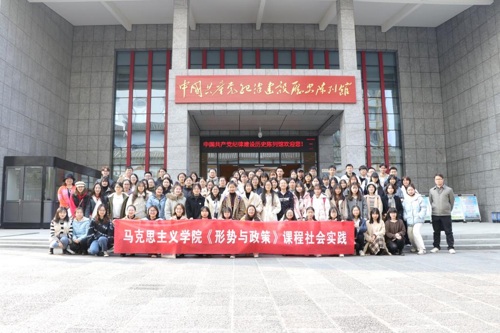 马克思主义学院讯(通讯员 赵芸逸;摄影 于淼)为引领大学生深入学习十九届四中全会和习近平依法治国重要论述精神,提升《形式与政策》课程教学效果,12月6日下午,我院思想政治教育专业2016级、2017级本科生在授课教师邵莉莉副书记的带领下,走进中国共产党纪律建设历史陈列馆和中共五大会址纪念馆,深入学习中国共产党纪律建设的光辉历程,重温革命先烈传播、践行马克思主义的峥嵘岁月。