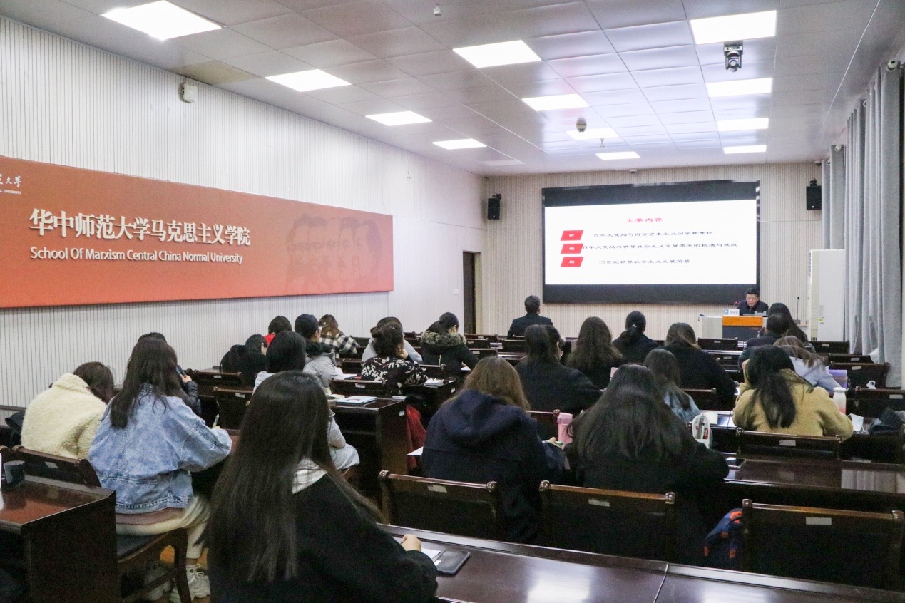 马克思主义学院讯(记者 沈沫;摄影 张亚鹏)11月23日上午9时,中联部当代世界研究中心研究员柴尚金做客“华大马克思主义讲坛”,在1号楼三楼报告厅为我院师生带来了一场题为“从百年大变局看世界社会主义发展前景”的精彩讲座。本次讲座由华中师范大学马克思主义学院主办,马克思主义学院研究生会承办,我院副院长毛华兵教授主持。我院学生积极参加,认真聆听。