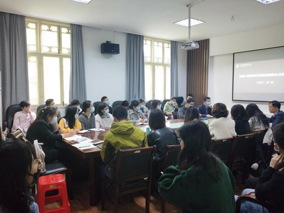 马克思主义学院讯(通讯员 马雪梅;摄影 马雪梅)2021年4月9日上午九点,华中师范大学“马克思主义生态文明观及其中国化研究”青年学术创新团队学术沙龙第十六期在1号楼二楼会议室如期举行。本次讲座以“乔治·马尔库什对历史唯物主义的新阐释”为主题,由中南财经政法大学哲学学院教授、博士生导师颜岩主讲,华中师范大学马克思主义学院副教授戴圣鹏主持,我院部分老师和学生到场聆听,座无虚席。