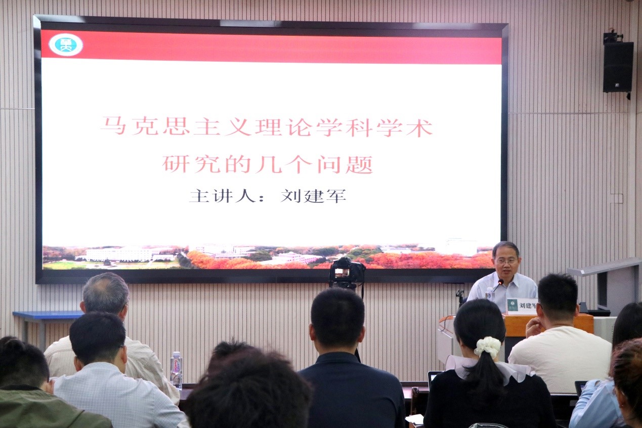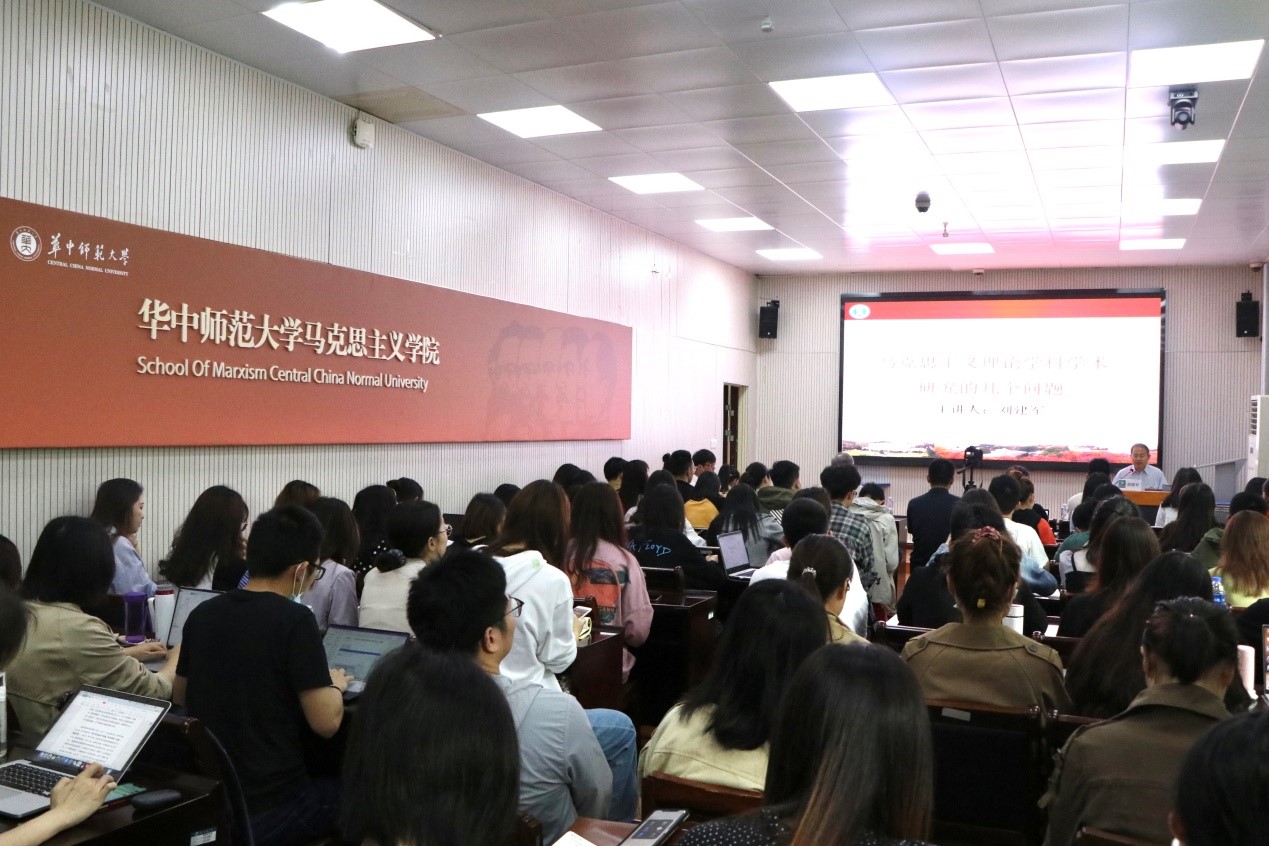 马克思主义学院讯(通讯员 沈沫;摄影 张亚鹏)2021年5月18日上午9时,由华中师范大学马克思主义学院主办、华中师范大学“新时代思想政治教育基础理论创新研究”青年学术创新团队承办的“思政名家讲坛”第二十期于1号楼三楼报告厅顺利举行。本次讲座邀请到中国人民大学马克思主义学院教授、博士生导师刘建军教授,带来主题为“马克思主义理论学科学术研究的几个问题”的精彩报告。讲座由华中师范大学马克思主义学院陈华洲教授主持,我院部分同学到场聆听,现场座无虚席。