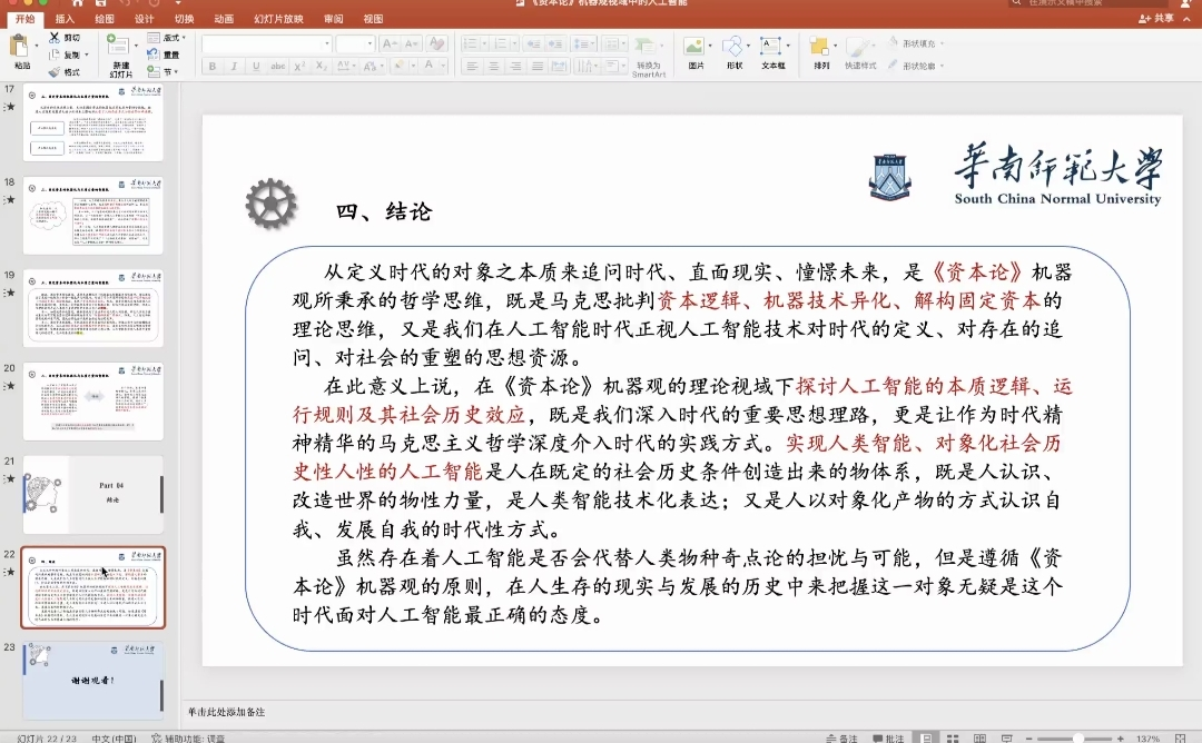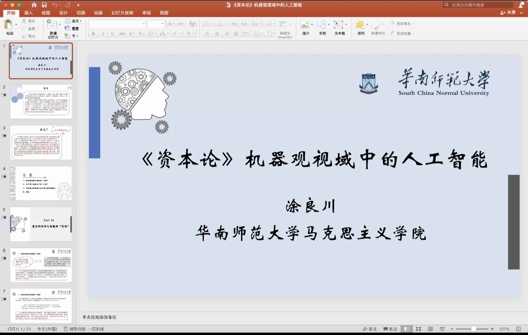 马克思主义学院讯(通讯员 殷淑霞)6月10日晚,由华中师范大学“马克思主义生态文明及其中国化研究”青年学术创新团队和华中师范大学马克思主义学院马克思主义与人类文明研究中心主办的以“《资本论》机器观视域中的人工智能”为主题的学术沙龙在腾讯会议顺利举行。本次沙龙特邀华南师范大学马克思主义学院教授、博士生导师涂良川主讲,华中师范大学马克思主义学院副教授戴圣鹏主持。