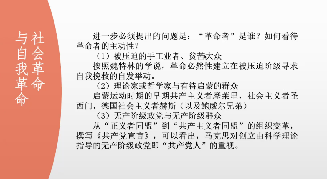 韩蒙老师表示这是马克思主义的创新和创造。这种革命论,在黑格尔与马克思的辩证法中得到了确证。在马克思看来,黑格尔对“实体--主题”的理解,使得对象性的人、现实的因而是真正的人,有可能被把握为人的实践活动的产物。社会环境的改变即社会革命与人的自我改变即自我革命的内在是一致的,客观世界的改造和主观世界的改造是同步发生的。