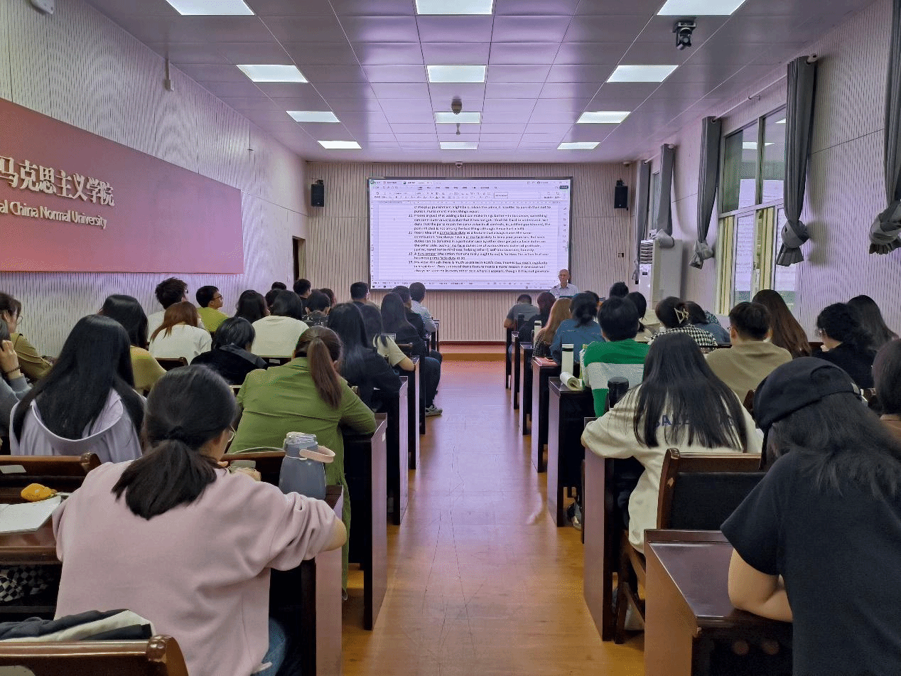 马克思主义学院讯(通讯员 芦梦帆)9月27日下午,由马克思主义学院举办的第27期华大韦卓民哲思系列讲座在1号楼3楼学术报告厅顺利举办。本次讲座由英国哲学家、英国科学院院士(Fellows of the British Academy),原英国基尔大学(University of Keele)、雷丁大学(University of Reading)哲学系教授乔纳森·丹西(Jonathan Dancy)主讲,主题为“The Path to Particularism”。讲座由学院副院长毛华兵教授主持,龙静云、吴秀莲、李玲、熊富标等老师以及硕博研究生60余人到场聆听。