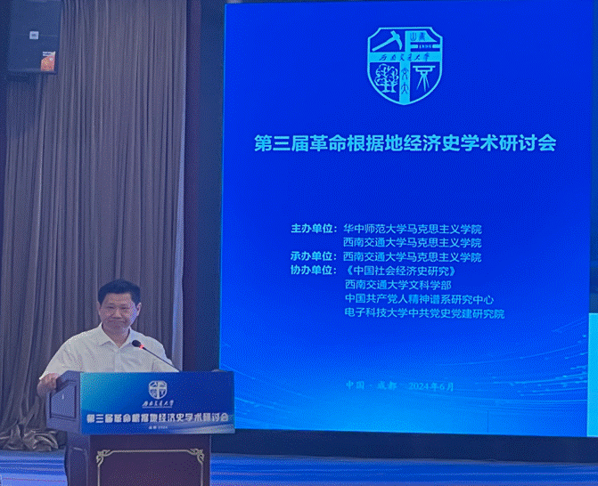 为继续深入推动革命根据地经济史研究,构建革命根据地经济史学术研究体系,2024年6月28日至30日,“第三届革命根据地经济史学术研讨会”在西南交通大学举行。此次会议由华中师范大学马克思主义学院和西南交通大学马克思主义学院主办,西南交通大学马克思主义学院承办,《中国社会经济史研究》、西南交通大学文科学部、中国共产党人精神谱系研究中心和电子科技大学中共党史党建研究院协办。来自南京大学、电子科技大学、厦门大学、华中师范大学等多所知名高校及科研机构的六十余位专家、学者共同参加了此次会议。2022年与2023年,第一届、第二届革命根据地经济史学术研讨会分别于华中师范大学、方志敏干部学院成功举办,革命根据地经济史这一研究领域获得了学界长足关注。