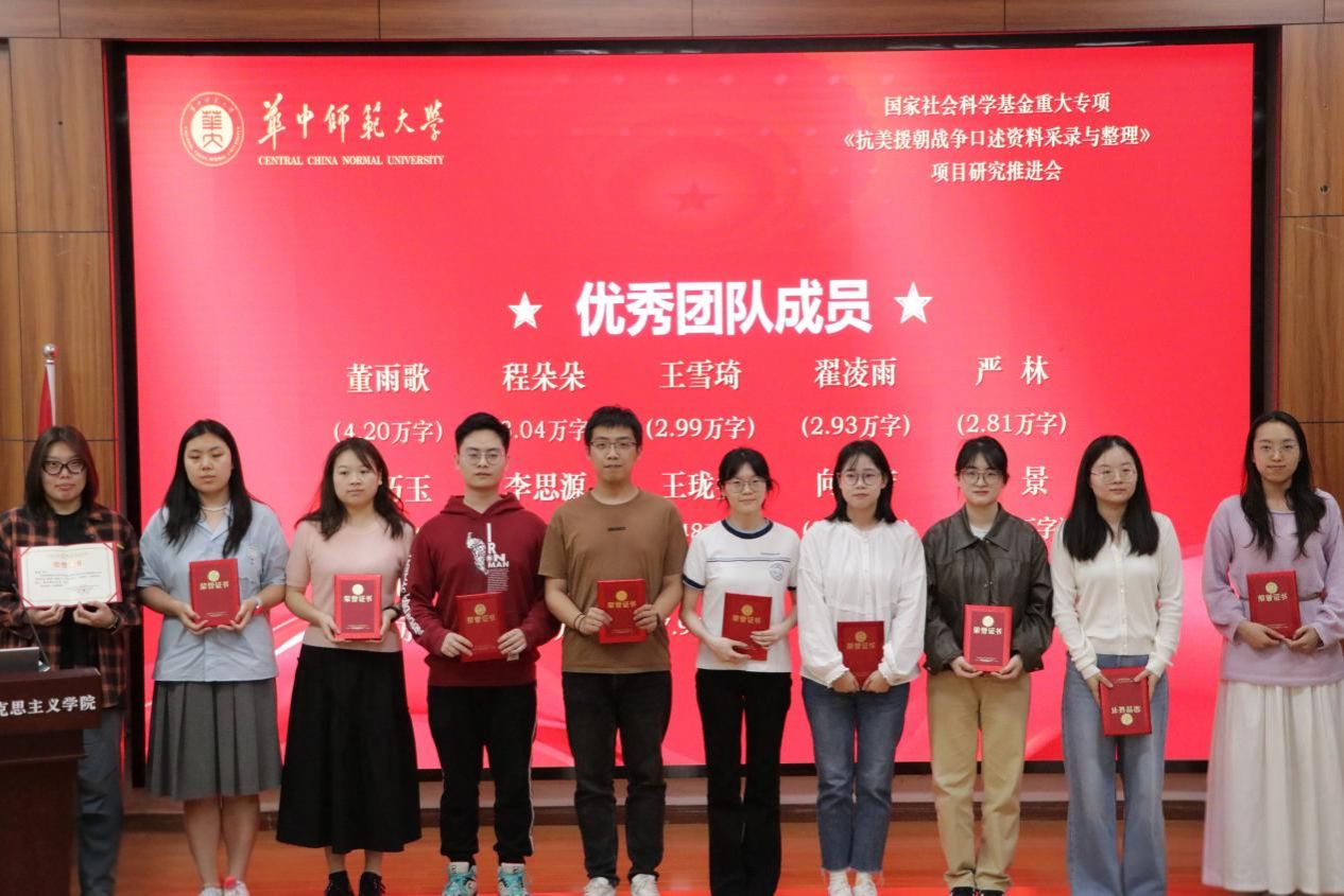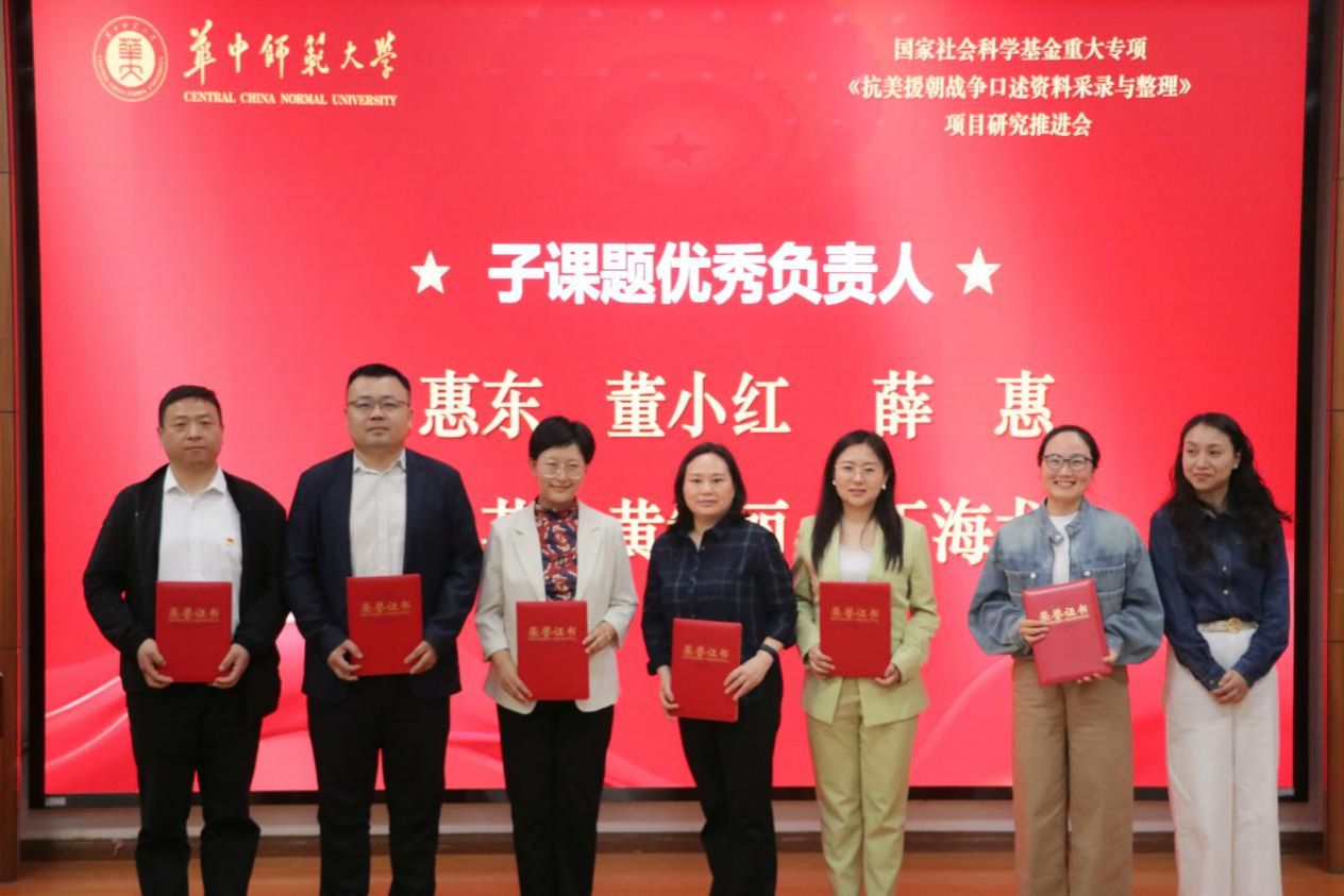 马克思主义学院讯(通讯员 任玉佳;摄影 蒋林杉)今年是中国人民志愿军抗美援朝出国作战75周年,自2023年启动国家社会科学基金重大专项《抗美援朝战争口述资料采录与整理》项目研究以来,按照“全面记录、能采尽采”要求,力争于今年完成湖北省健在抗美援朝老兵采录全覆盖。3月26日,由华中师范大学马克思主义学院党委书记孙永祥主持的国家社会科学基金重大专项《抗美援朝战争口述资料采录与整理》项目研究推进会召开。中共湖北省委宣传部理论处负责人李琼、湖北省退役军人事务厅思政权益处董胜斌副处长、北京航空航天大学王春玺教授、华中师范大学社科处副处长蔡鹏及课题组成员参加。会议由华中师范大学马克思主义学院院长毛华兵主持。