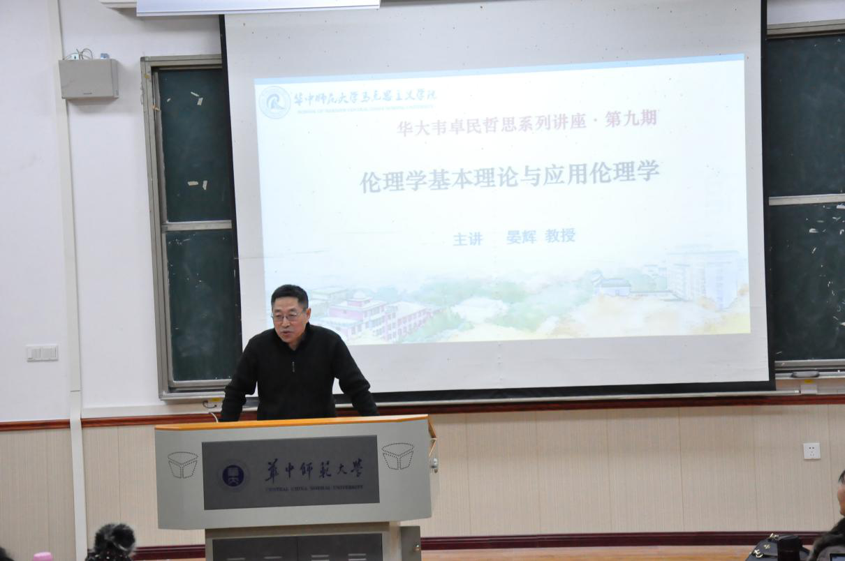 马克思主义院讯(记者 冯宇;摄影 孙梦圆)12月28日晚,由华中师范大学马克思主义学院主办的华大韦卓民哲思系列讲座第九期于1号教学楼1101教室成功举办。本场讲座的主题为《伦理学基本理论与应用伦理学》,由北京师范大学哲学学院伦理学与道德教育研究所长、教授、博士生导师晏辉主讲。
