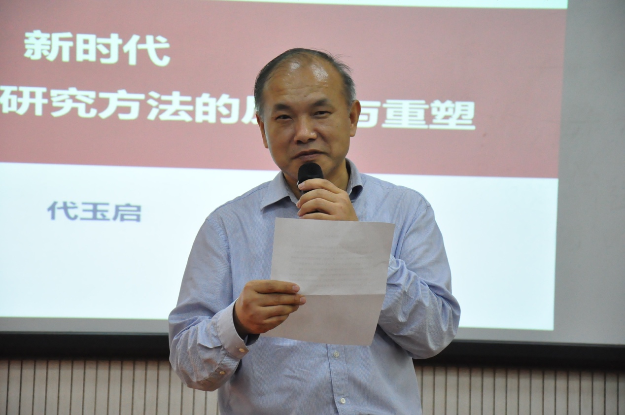 代玉启副教授首先从“思想政治教育研究方法有哪些”切入主题,吸引了同学们的注意力。接着,他深入讨论了进入新时代的变化及其与思想政治教育的关联,概括了十八大以来我国取得的成就。随后,他依次介绍了近年来思想政治教育研究方法的述评,现有研究方法对其他学科的引用、借鉴和反思,并对思想政治研究的原理、方法、历史和比较等内容作了精辟阐述。临近讲座的尾声时,他总结了新时代要推进研究方法返本开新,以问题为中心,静态与动态结合、定性与定量结合,运用多种方法并互为补充以更全面、更准确地理解研究问题。