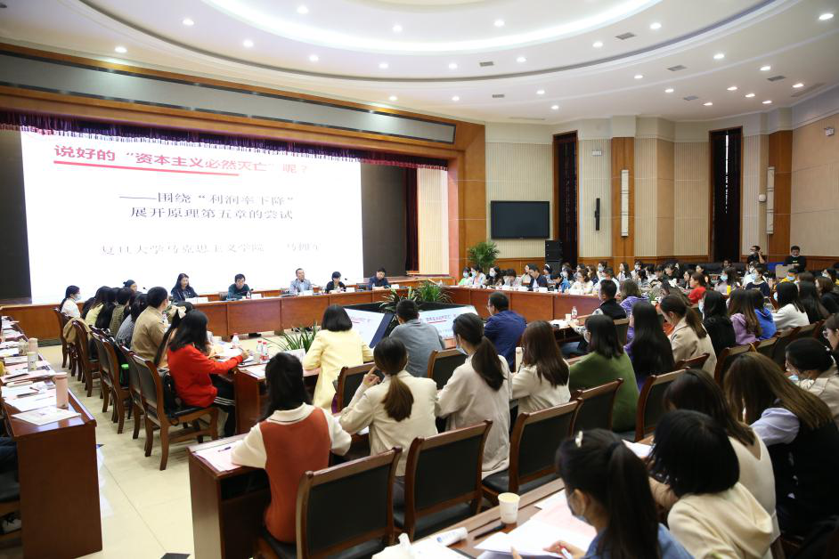 在集体备课阶段,全体与会教师就“原理”课第五章展开集体研讨。在专家指导环节,复旦大学马克思主义学院教授、博士生导师马拥军做了题为《说好的“资本主义必然灭亡”呢?——围绕“利润率下降”展开原理课第五章的尝试》的教学指导,他指出:第五章问题和内容非常多,要抓住非讲不可的内容,要善于理顺第五章三节内容的内在关系,用一条主线串联起来,同时也要敢于回应学生提出的尖锐问题。在解释“资本主义为什么没有灭亡”这一问题时,他指出:当前的资本主义发生的变化,使它与19世纪的资本主义大不相同,实际上它已走在灭亡的道路上了。在处理三节内容过渡时,他强调,根据利润率下降来研究垄断,可以实现第一节向第二节的顺利过渡,把握利润率下降研究当代资本主义的新变化,可以进一步认识到利润率下降的规律与资本主义必然灭亡的关系,从而可以厘清资本主义为社会主义所代替的历史必然性。