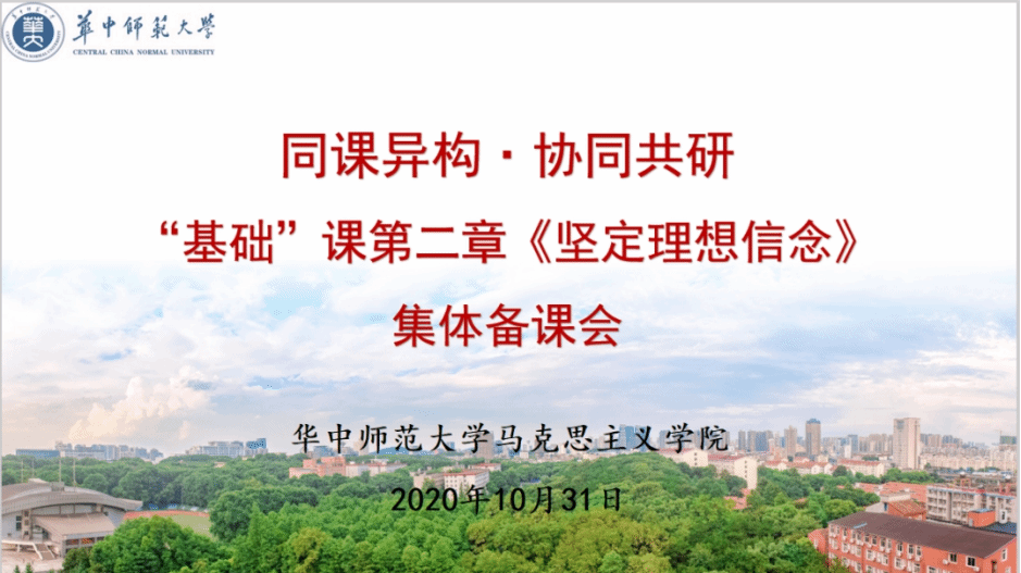 马克思主义学院讯(通讯员:张鑫)为深入贯彻落实习近平总书记在思想政治理论课教师座谈会上的重要讲话精神,进一步提升思政课教学的针对性和实效性,不断提升思想政治理论课的育人质量,2020年10月31日下午2点半,“同课异构 协同共研”华中师范大学“基础”课第二章《坚定理想信念》集体备课研讨会通过腾讯会议成功举行。本次会议由华中师范大学马克思主义学院副院长李芳教授主持。