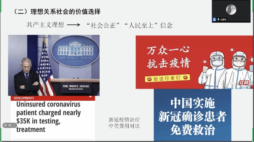 中央财经大学马克思主义学院副教授刘亚琼结合自身教学经验和教学体会,做了题为《共产主义理想是虚无缥缈的吗?》的讲解。在教学内容上,刘亚琼教师通过实际的案例与学生探讨“缥缈论”的主要观点及错误之处,进而引导学生思考远大的共产主义理想的时代意义。在教学方法上,她强调要以问题为导向,积极开展师生互动,同时要站在学生的角度思考问题,结合不同专业的特色,设置不同的教学情境,增强课堂的温度。