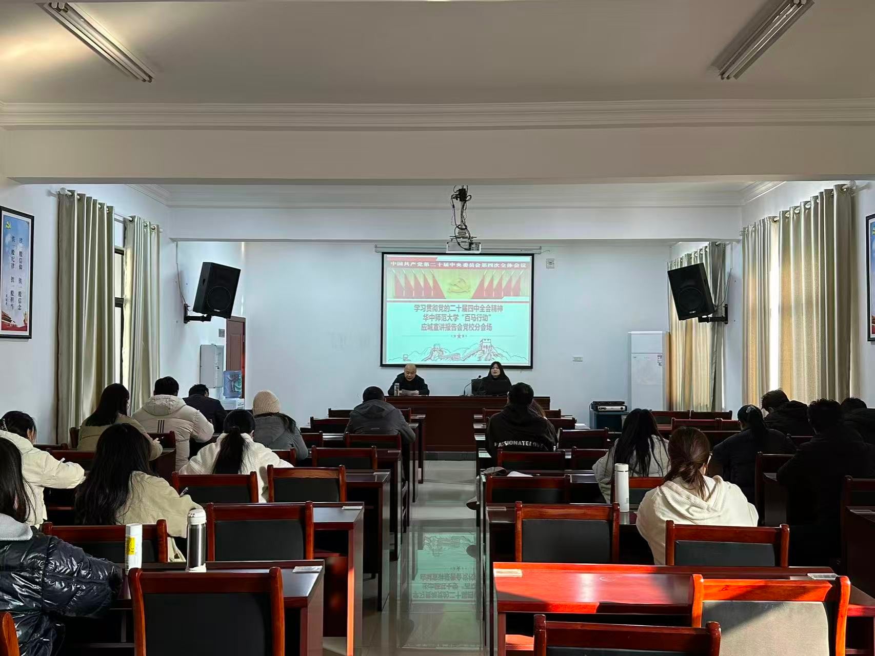 马克思主义学院讯(通讯员 杨芳芳)为进一步学习贯彻党的二十届四中全会精神,凝聚加快建成湖北支点建设的强大力量,12月19日,华中师范大学“百马行动”宣讲团组织马克思主义学院教师学生赴“理论热点面对面”实践基地孝感应城市开展党的二十届四中全会精神的系列宣讲活动。六场特色报告会覆盖干部、群众、师生代表,推动理论精神落地生根。