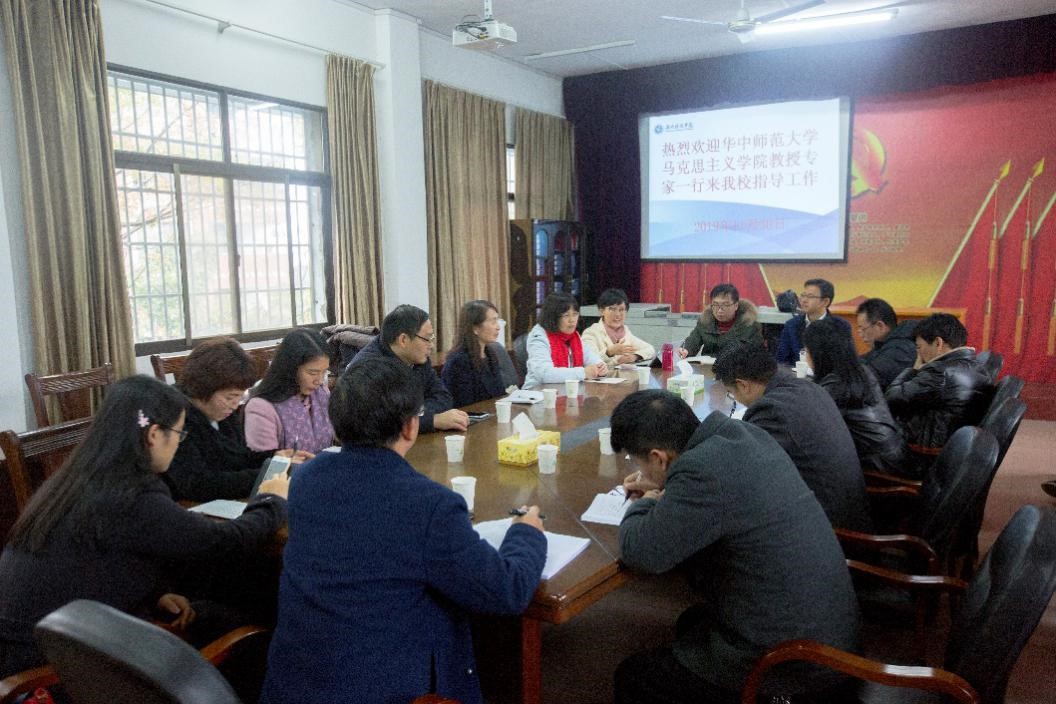 30日上午,我院思想道德与法治教育教研部党支部教师党员们与湖南科技学院马克思主义学院教工第一党支部教师党员们开展座谈会,围绕思想政治理论课尤其是思想道德修养与法律基础课程教学方法以及支部工作建设等一系列问题进行了深入交流。教研室主任薛惠老师简要介绍我院思想政治理论课教学特别是思想道德修养与法律基础课程改革的基本情况,同时展示了我院近期开展的“同课异构、协同共研”活动的成果。徐秉国老师围绕如何讲好“中国精神”进行了分享,着重指出了中国精神是什么?如何帮助学生理解中国精神?同时他还介绍了我院在承担大学生《形势与政策》课方面的工作。湖南科技学院马克思主义学院党支部书记郑向晖、院长廖雅琴对我院思政课教学工作给予了高度评价,并介绍了湖南科技学院在思政课的教学方式和教学活动方面的举措。龙静云从支部日常工作入手,介绍了本党支部的一些工作方法以及开展支部主题党日等活动的一些经验。最后,双方就如何加强党支部建设展开了深入的讨论。