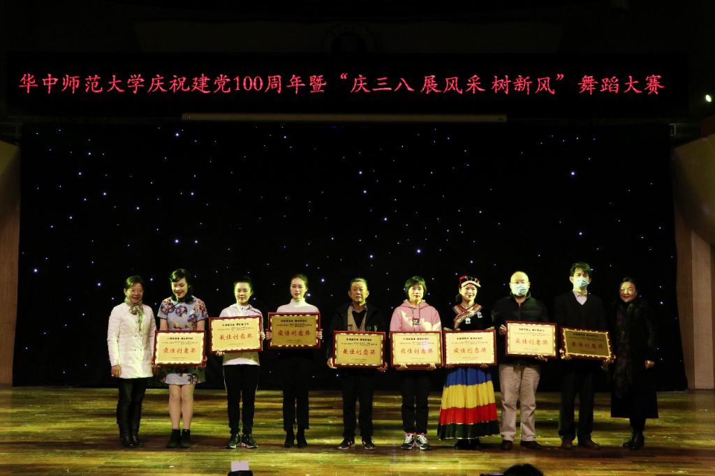马克思主义学院讯(通讯员:陈梦佳;摄影:杨晓芳)2021年3月7日,我校“巾帼跟党走 建功新时代”——第五届女教职工“庆三八 展风采 树新风”舞蹈大赛在音乐学院音乐厅举行。湖北省教科文卫体工会副主席赵黎、华中师范大学党委副书记查道林、校工会主席周东明、校工会常务副主席郭春娥、武汉大学工会副主席陈蓓、华中科技大学工会副主席朱琼花、中南财经政法大学工会副主席任翛、中国地质大学工会副主席于荣萍、武汉东湖学院工会副主席马宏燕出席了此次活动。我院教职工积极参赛,认真备赛,斩获最佳创意奖。