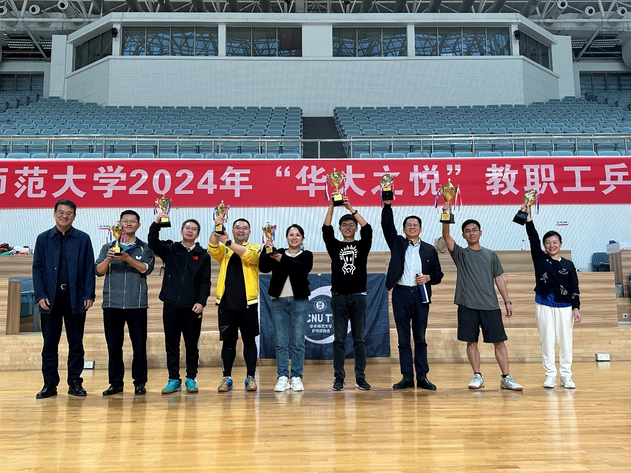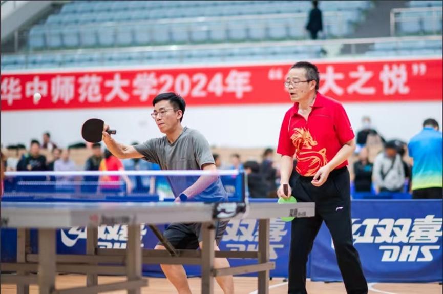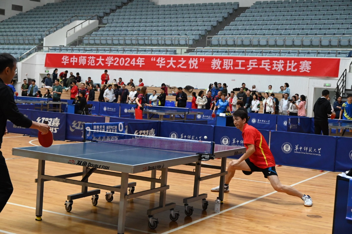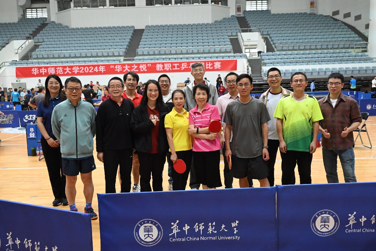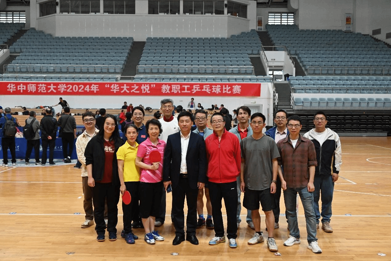 马克思主义学院讯(通讯员 刘莉莎)10月25日-26日,华中师范大学2024年“华大之悦”教职工乒乓球混合团体比赛在学校佑铭体育馆举行。我院党委书记孙永祥、工会主席周莉莉、球队教练王潮,以及蔡丽、李敬煊、谢从高、殷筱、李哲、邵彦涛、肖超、秦志龙、李春火、雷禹、向东旭、刘莉莎等十余位教职工参与了此次比赛。为打造院乒乓球队立下汗马功劳的原任工会主席余四川老师亲临现场为球队指导、助威。