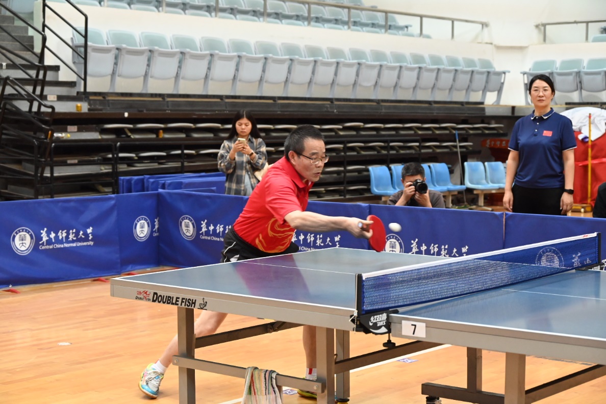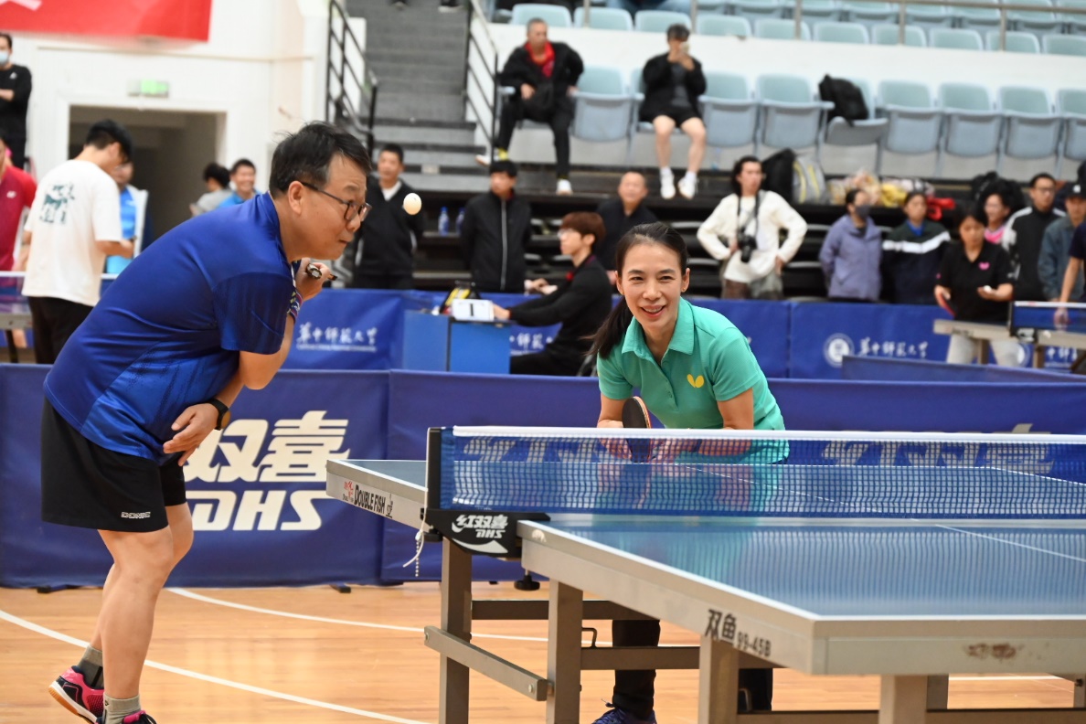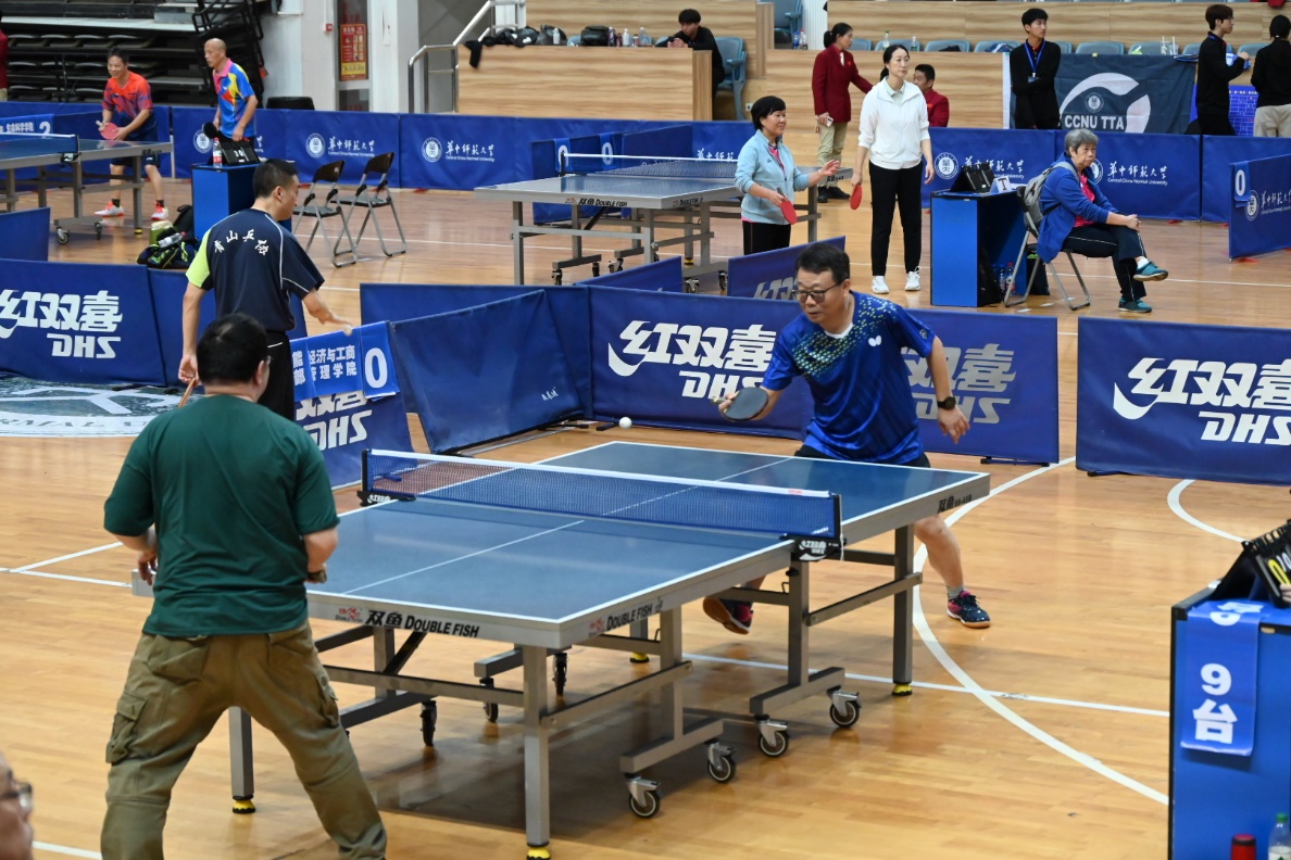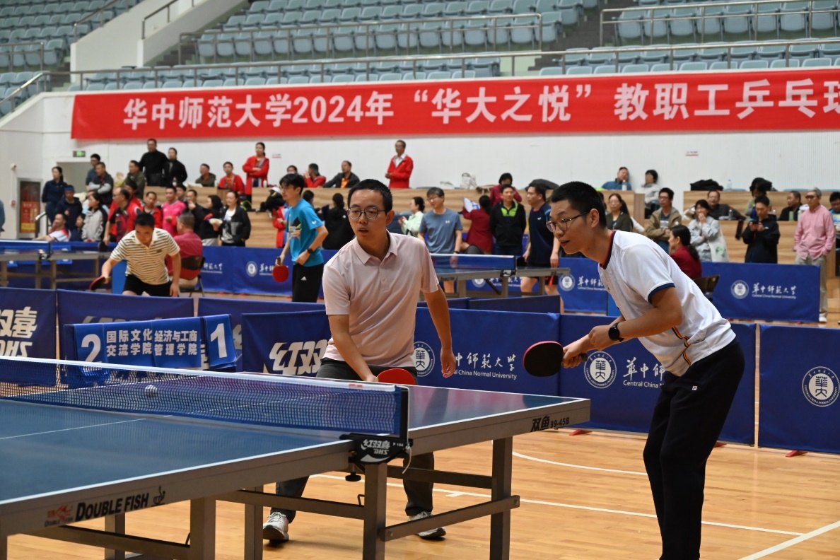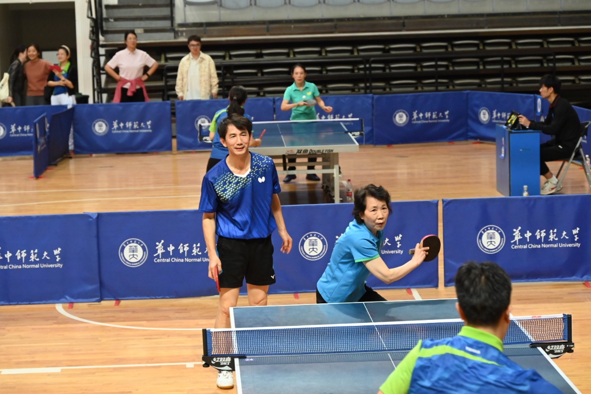 马克思主义学院讯(通讯员 刘莉莎)10月25日-26日,华中师范大学2024年“华大之悦”教职工乒乓球混合团体比赛在学校佑铭体育馆举行。我院党委书记孙永祥、工会主席周莉莉、球队教练王潮,以及蔡丽、李敬煊、谢从高、殷筱、李哲、邵彦涛、肖超、秦志龙、李春火、雷禹、向东旭、刘莉莎等十余位教职工参与了此次比赛。为打造院乒乓球队立下汗马功劳的原任工会主席余四川老师亲临现场为球队指导、助威。