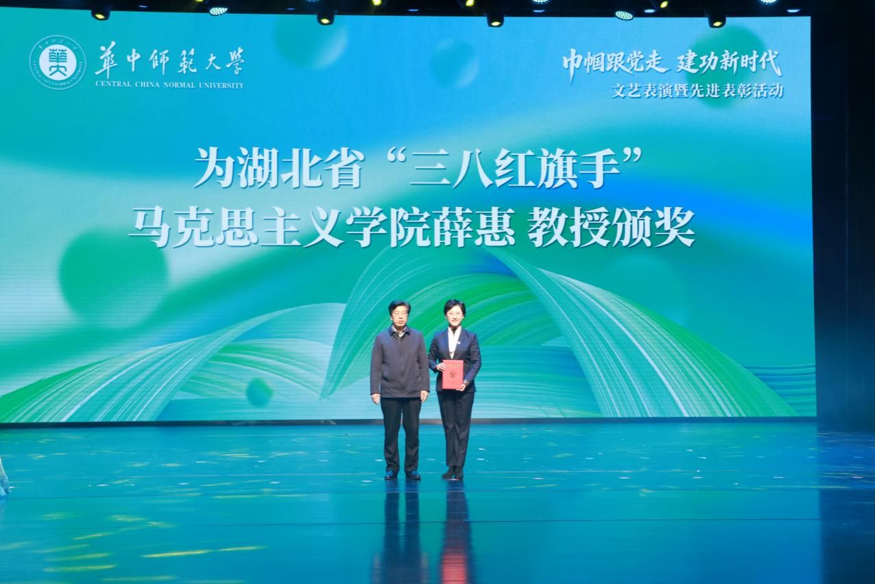 在先进表彰环节,马院巾帼凭借深耕教坛和坚守岗位的实绩收获满满赞誉。薛惠教授荣获湖北省“三八红旗手”称号,其深耕思想政治教育领域多年,以扎实的教研实绩与不懈的奋斗姿态,成为荆楚大地上巾帼建功的典范;邵莉莉教授凭借立德树人的初心坚守和彰显担当的工作业绩,获评华中师范大学第四届“十佳女教职工”。一份份荣誉的背后,是马院女教职工们始终锚定立德树人根本任务,将个人成长与学院发展、学校建设同频共振的生动实践,更是学院巾帼力量在人才培养、教学科研道路上步履不停、深耕不辍的最好见证。
