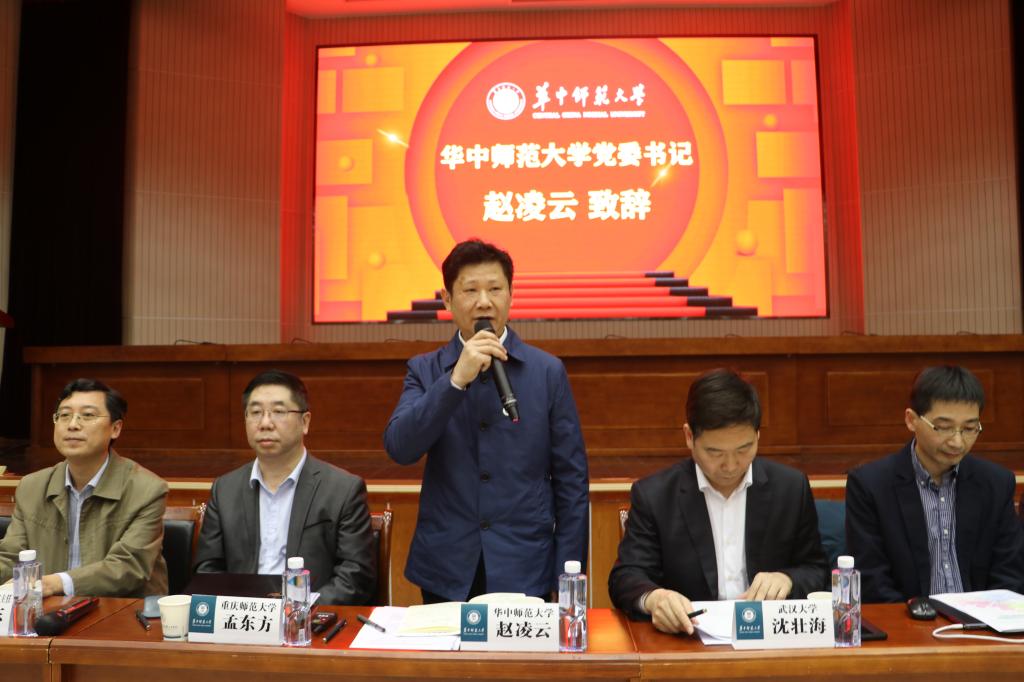 华中师范大学党委书记赵凌云出席会议并致辞。他首先代表学校向参会领导老师表示诚挚欢迎与感谢,对本次高等院校马克思主义学院院长联席会议的召开表示祝贺。他指出,今年是中国共产党诞辰100周年,在这一重要历史时刻召开此会机会难得且意义重大,发起成立院长联席会议这一机制和平台,有利于开展有组织的理论研究,由各高校共同确定重大课题、集中力量攻关,有利于推进可持续创新性发展,有利于培育扎根大地的学风。结合正在全党开展的党史学习教育,他简要介绍了华中师范大学以及马克思主义学院在学科建设、人才培养、科学研究、社会服务和文化传承等方面努力与成绩。他表示,希望通过联席会议推进全国马克思主义学院资源共享,优势互补,共商共建共发展,为建设好马克思主义学院、马克思主义理论学科,推进马克思主义中国化新的伟大进程,作出更大的贡献。