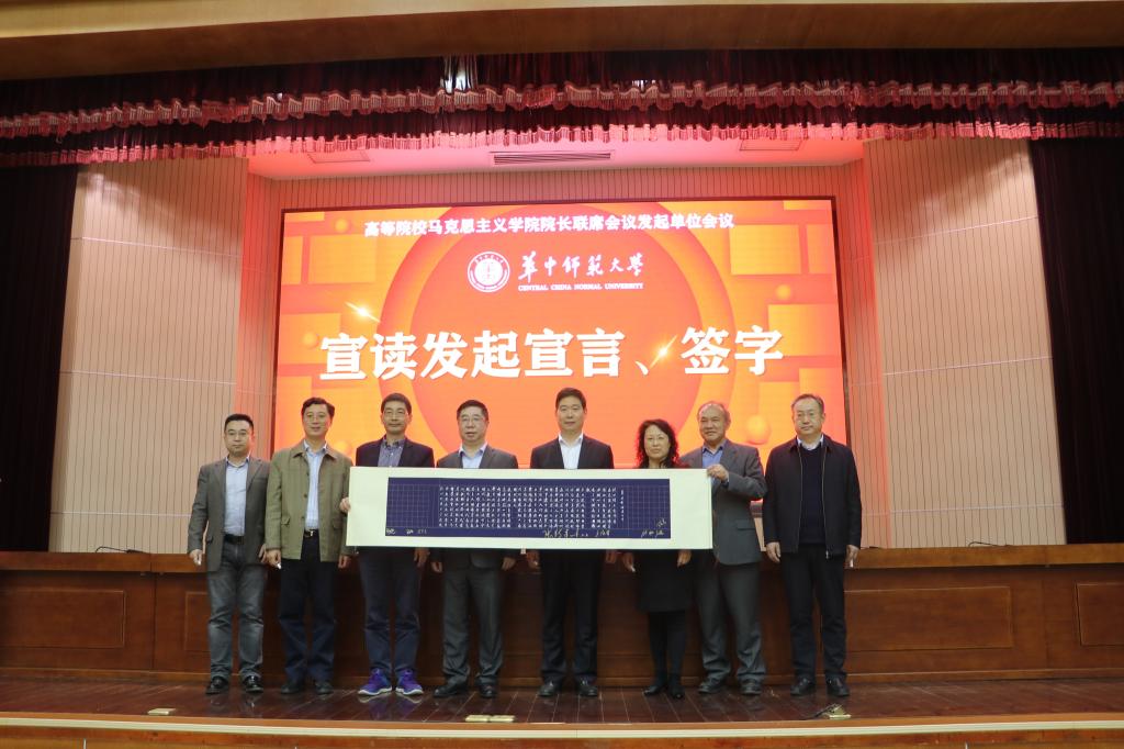 马克思主义学院讯(通讯员 唐慧颖 胡奖 左婷;摄影:覃施颖 许静)4月10日,高等院校马克思主义学院院长联席会议发起单位会议在华中师范大学科学会堂一楼报告厅隆重举行。来自武汉大学、兰州大学、华东师范大学、吉林大学、东北师范大学、首都师范大学等全国70余所高校的马克思主义学院院长出席会议,他们就联席会议章程、建设机制、议事规则等内容进行了深入交流并达成了广泛共识,共同签署了高等院校马克思主义学院院长联席会议发起宣言。本次联席会由高等教育出版社和华中师范大学马克思主义学院联合主办。会议由华中师范大学马克思主义学院党委书记孙永祥主持。